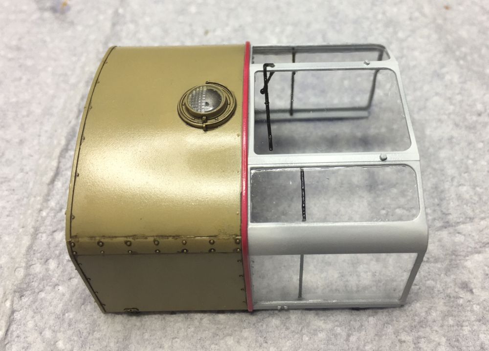 Los ging es mit den beiden Enden der Bahn. Die, wie üblich, vielen Einzelteile passten gut ineinander und wurden gleich mit der Airbrush bearbeitet. Dann kamen die Klarteile, Haltestangen und Scheibenwischer (mit Handbetrieb) hinzu.