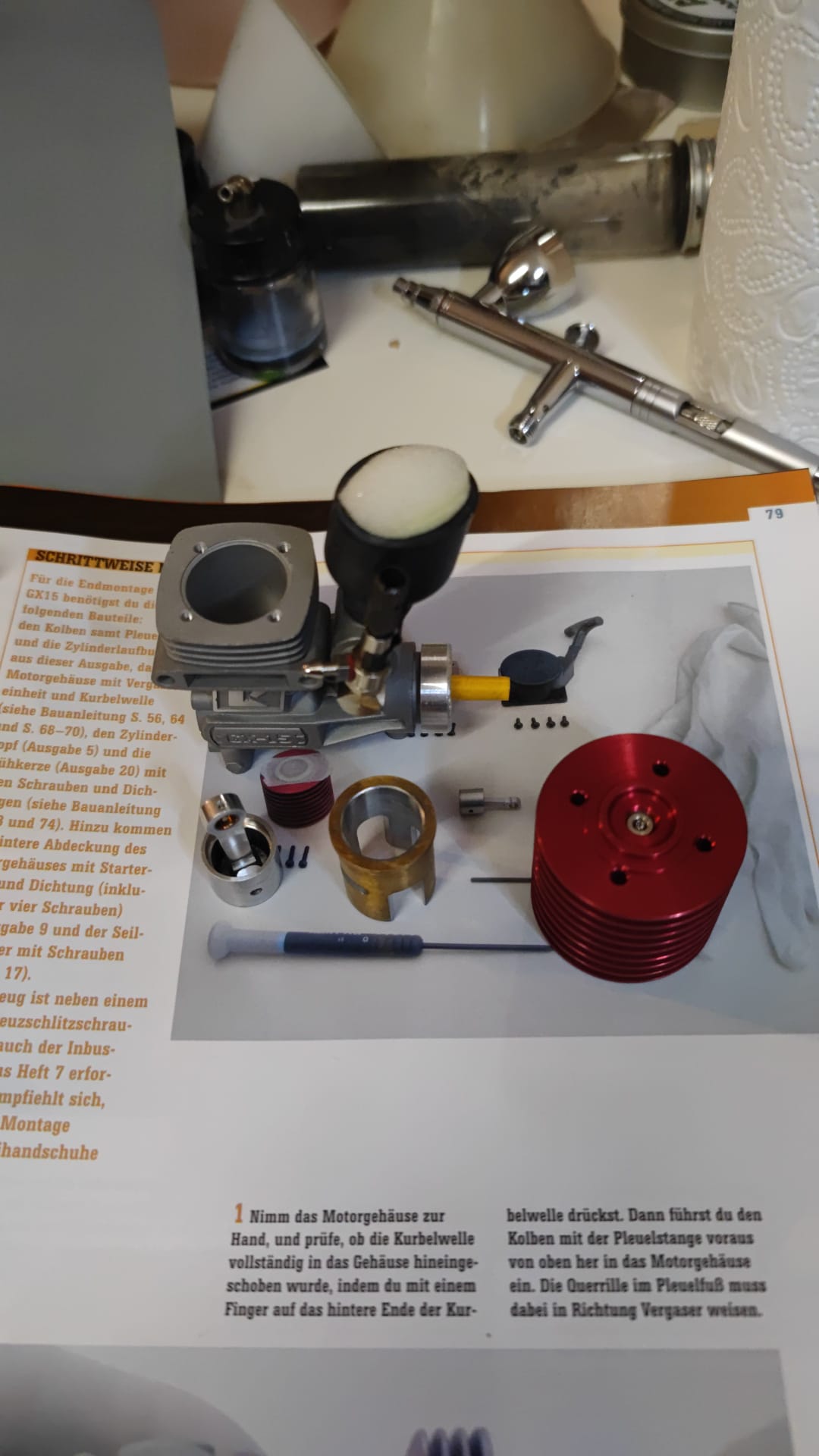 Mit Motorgehäuse, Pleuelstange, Kolben, Laufbuchse, Zylinderkopf und natürlich Zündkerze.....sehr cool und einfacher, als ich dachte.