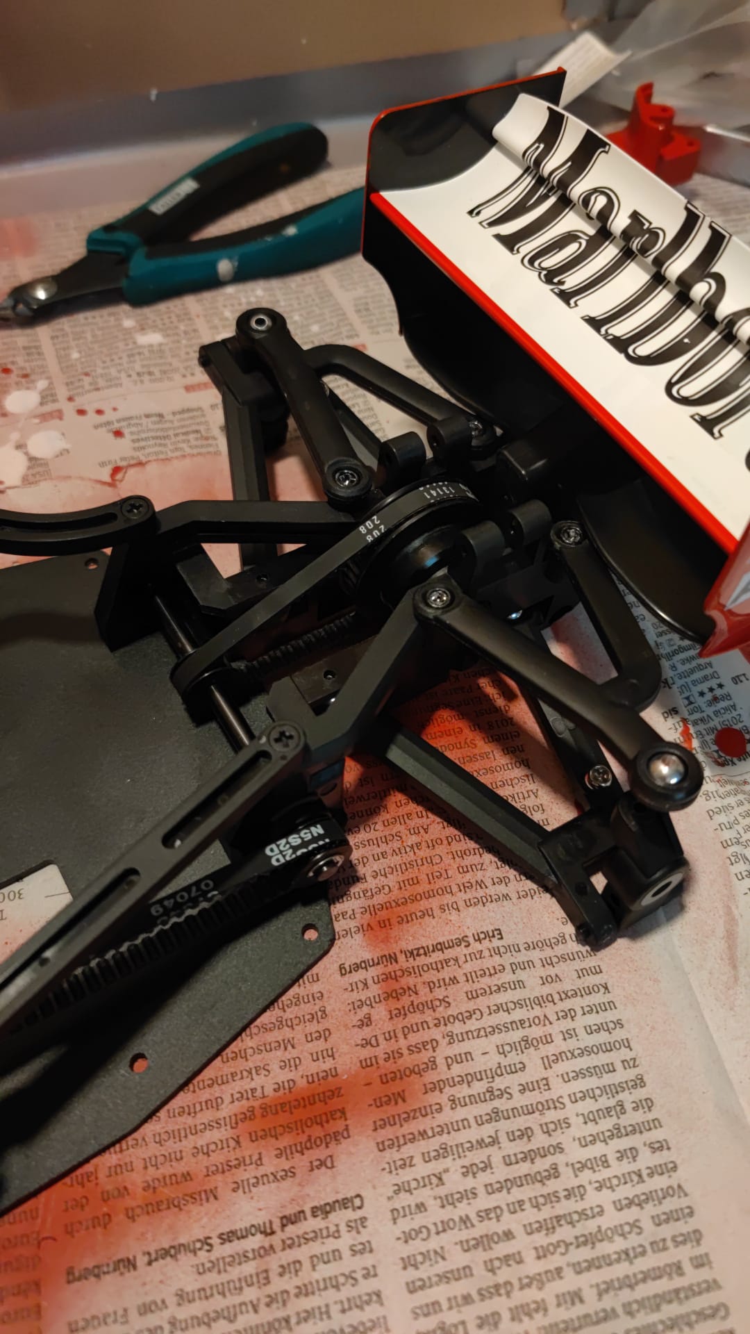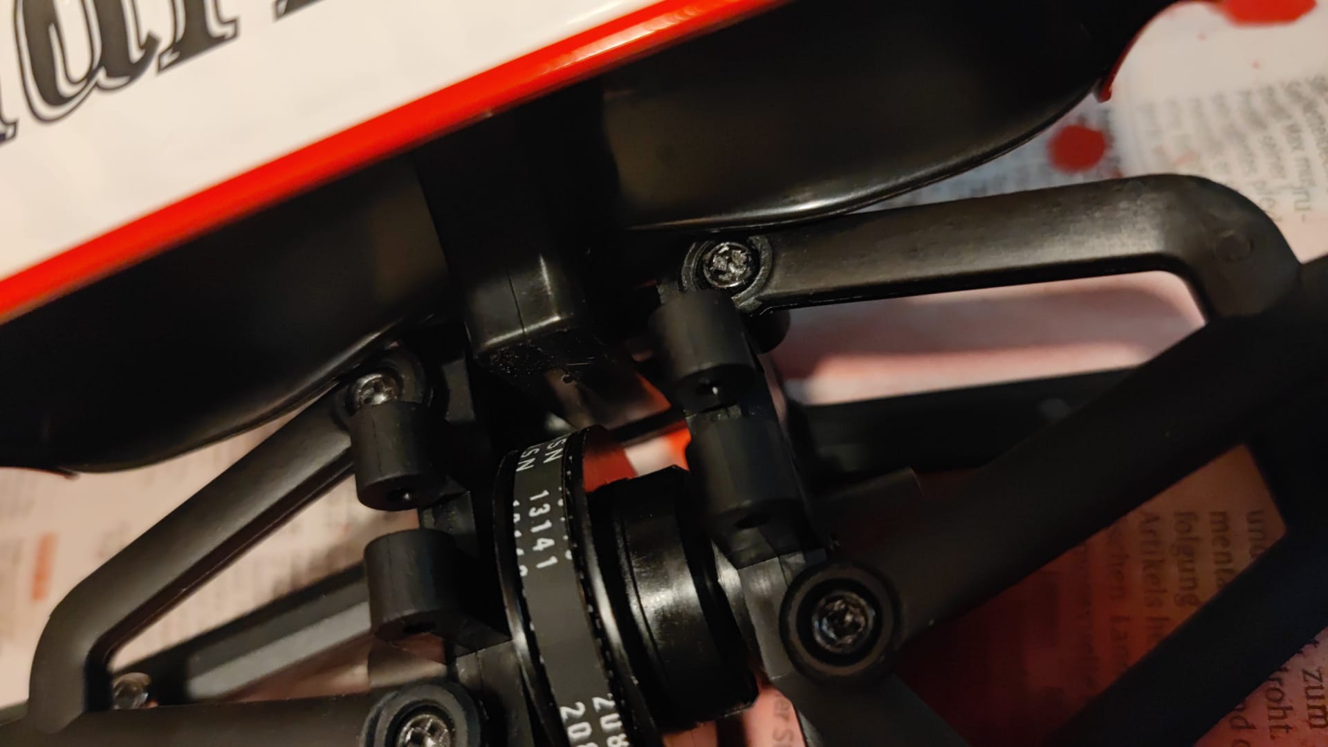 Nachdem die Antriebseinheit mit den zwei Keilriemen und den Spoiler montiert hat.... soll man dann zwei Gelenkköpfe unter dem Heckspoiler einschrauben. Also wieder alles abbauen und neu anfangen...