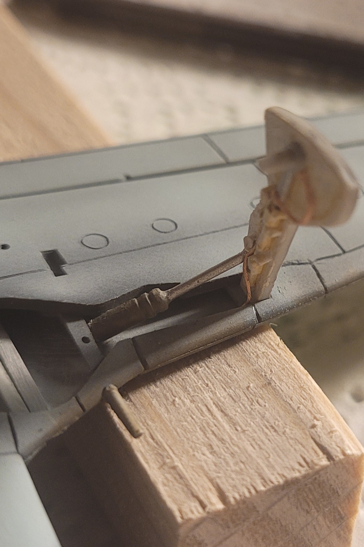 Sah bisschen sehr mager aus für meinen Geschmack. Also kurzerhand die Teile etwas eingekürzt, um ein kleines Stück dünner geschliffenem Gussast erweitert und mit dezenter Struktur versehen.