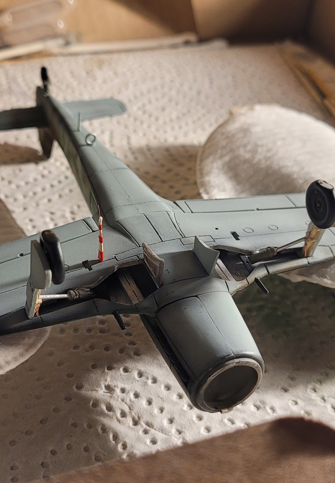 Und wäre das vom reinen "Bau" - Status her nicht so eine Last-Minute-Idee gewesen, würde die Anschlussstelle auf der Innenseite auch vernünftig aussehen. Bzw wäre das Ende zwischen den Hälften der Tragfläche verschwunden. Also Memo an mich selbst fürs nächste Mal: vorausschauend planen :D