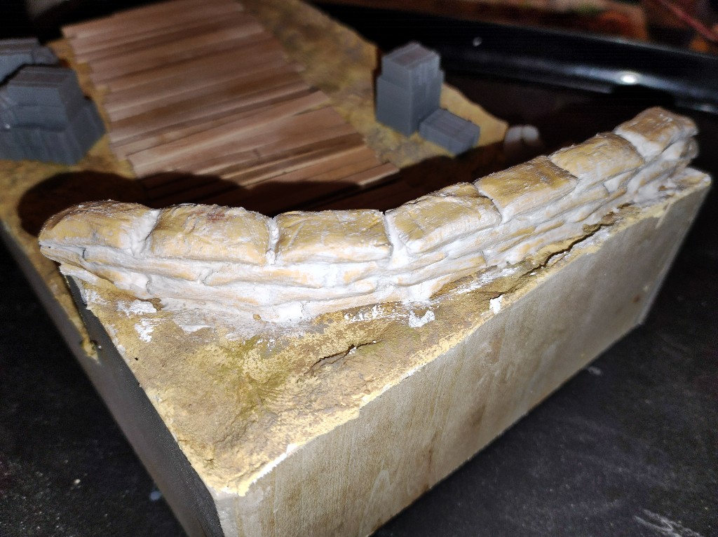 Die Sandsäcken müssen nochmal genauer definiert werden. Sonst wirkt es zu einheitlich. Zumindestens an der Ecke auf dem Foto ist mir das aber schon gut gelungen