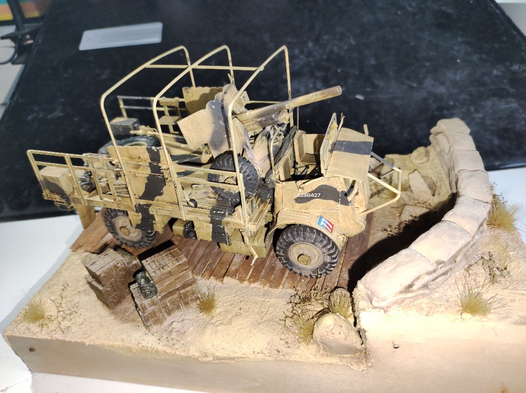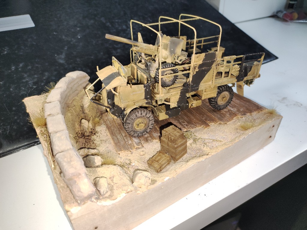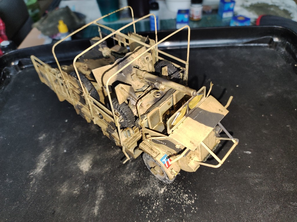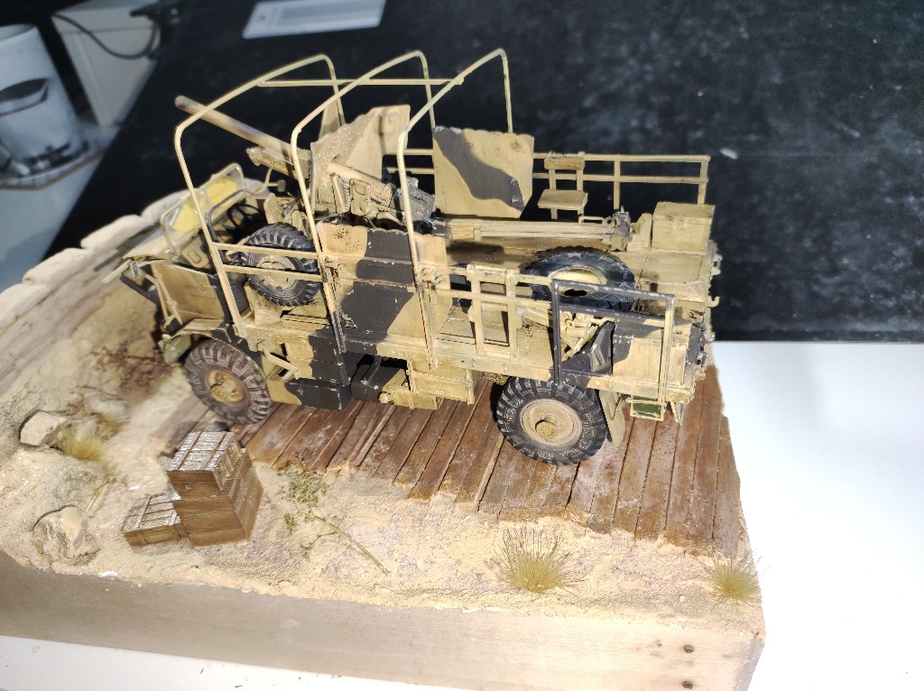 Der Bedford schaut ja schon "gewaltig" hinter der Tarnung hervor, gerade in Afrika/ Wüste sehr gefährlich. Wenn möglich, würde ich ihn noch etwas "tiefer" legen.