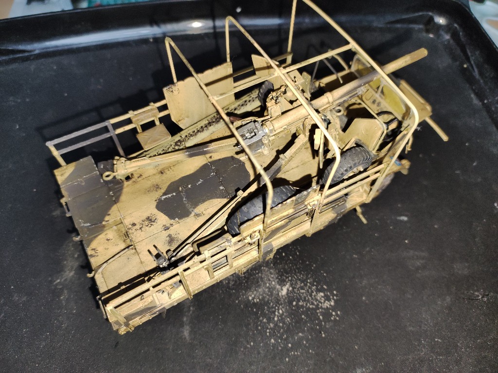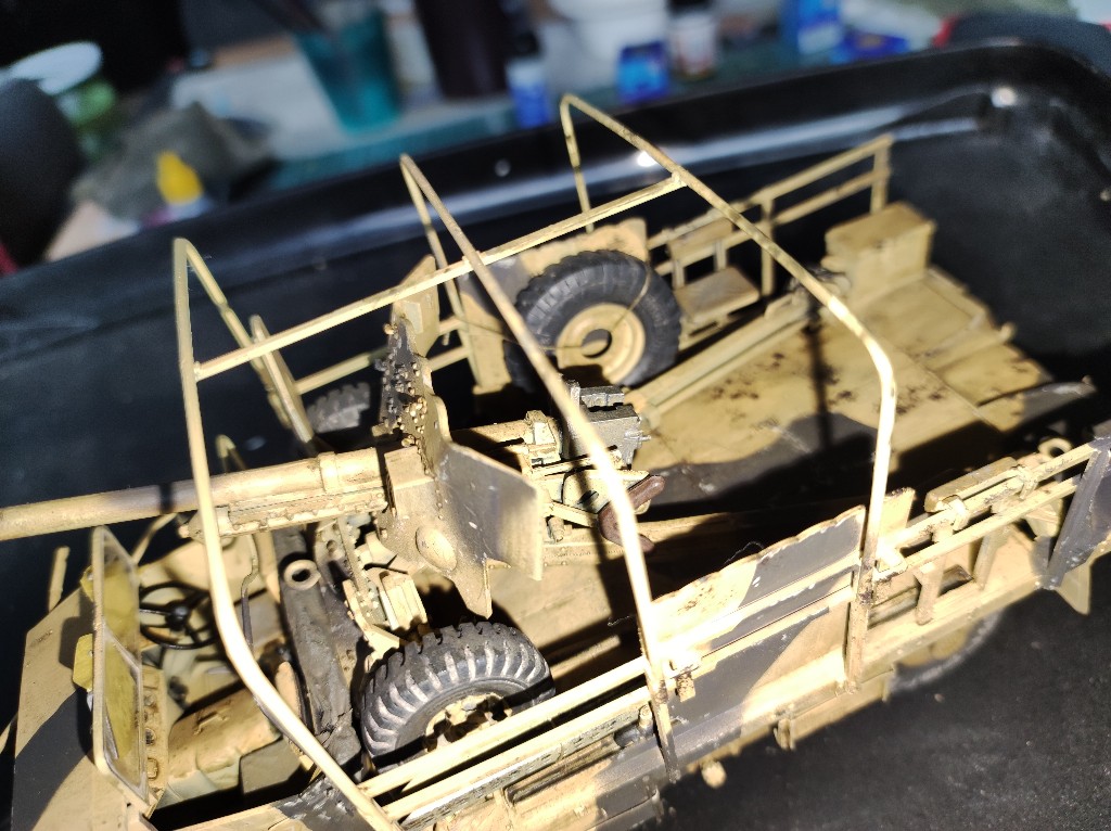 So liebe Freunde des Plastikmodellbaus, es geht in die Finale Phase. Nach einem Chipping und dem Wash folgte an ausgewählten stellen ein Pinwash. Dadurch ist insbesondere die Ladefläche überzeugens gealtert wurden
