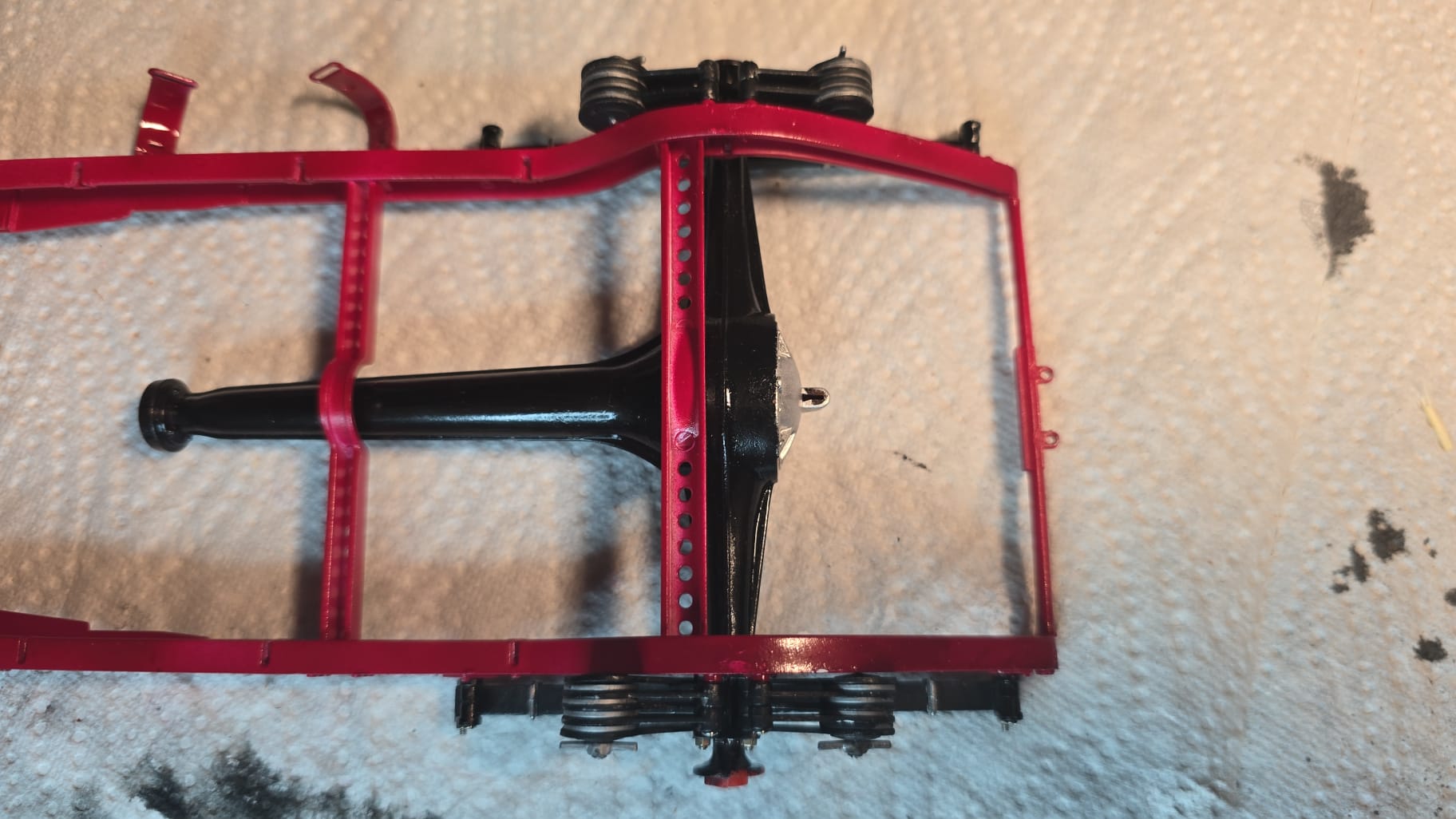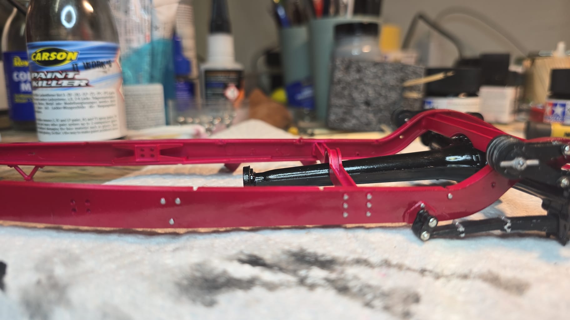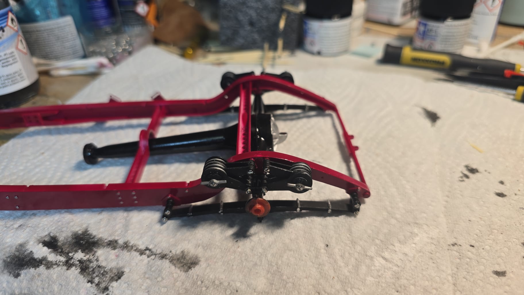 Bei den vorderen Blattfedern hätte ich die Gussgrate abgeschliffen. Sie sind ja später gut sichtbar.