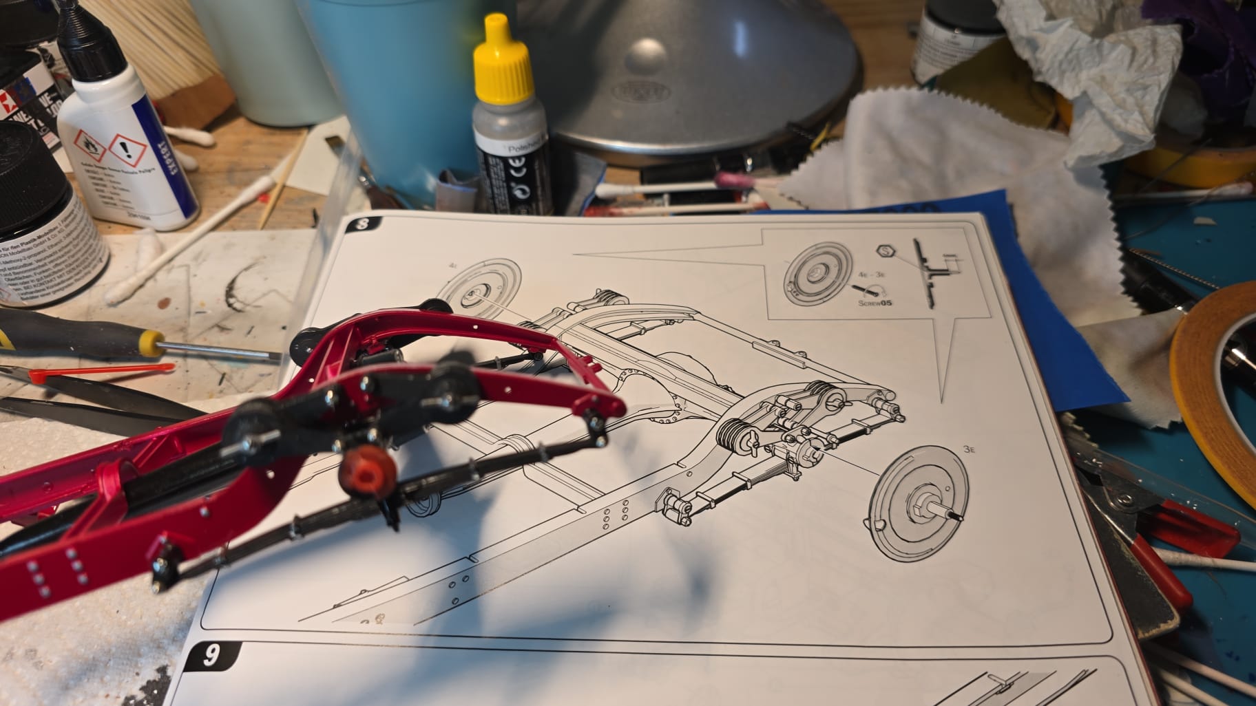 Die Federung ist fertig montiert. Schrauben an sich sind ja schön, aber man sollte auch Platz für den Schraubendreher lassen.....