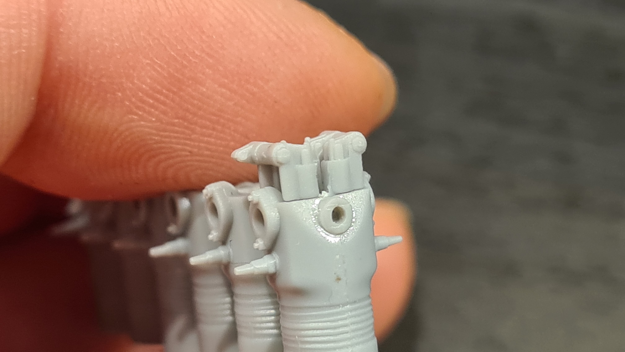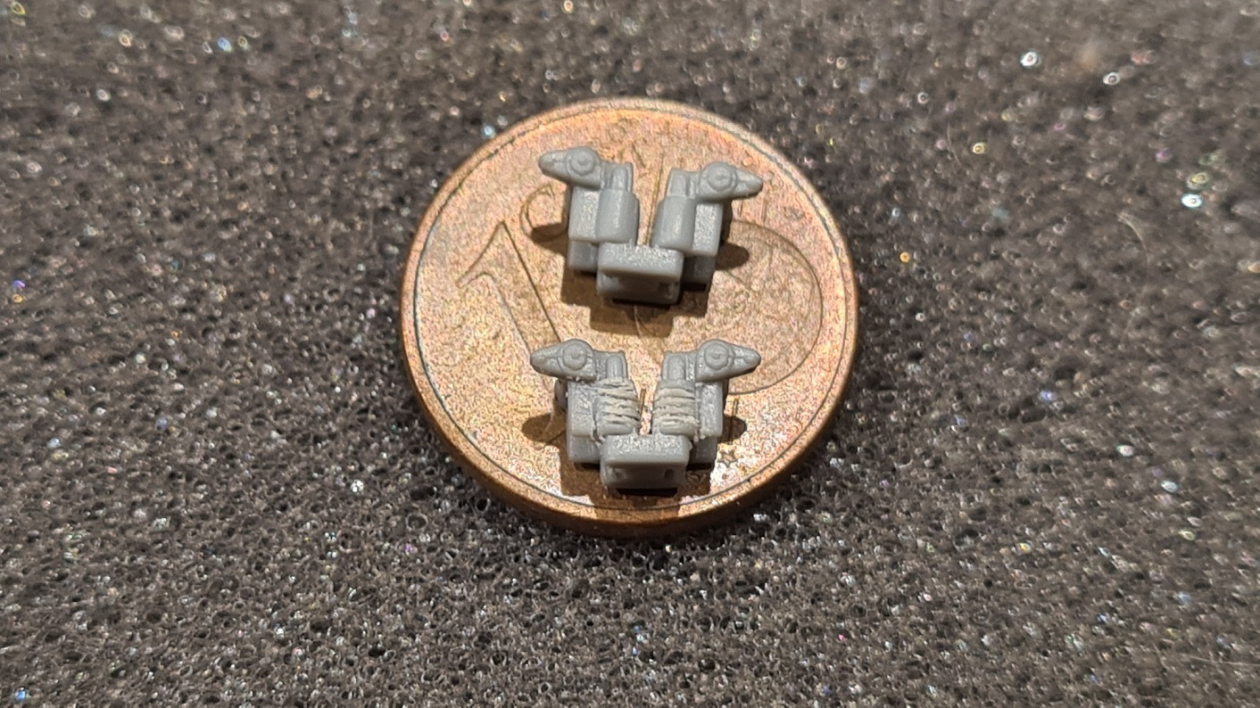 Als Kompromiss habe ich die Federn mit einer Resin Säge-Rasierklinge und Bastelmesser eingeritzt.