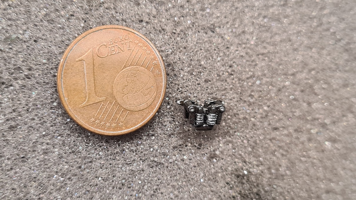 Weniger gelungen im Bausatz ist die Darstellung der Ventile. Um es besser gießen zu können, wurden die Ventilfedern weggelassen. Das ist sehr schade, den gerade dieser Teil des Motors ist deutlich sichtbar. Auf folgendem Foto kann man den Mechanismus für den ersten Zylinder sehen. In dem Maßstab ist das schon ziemlich doof