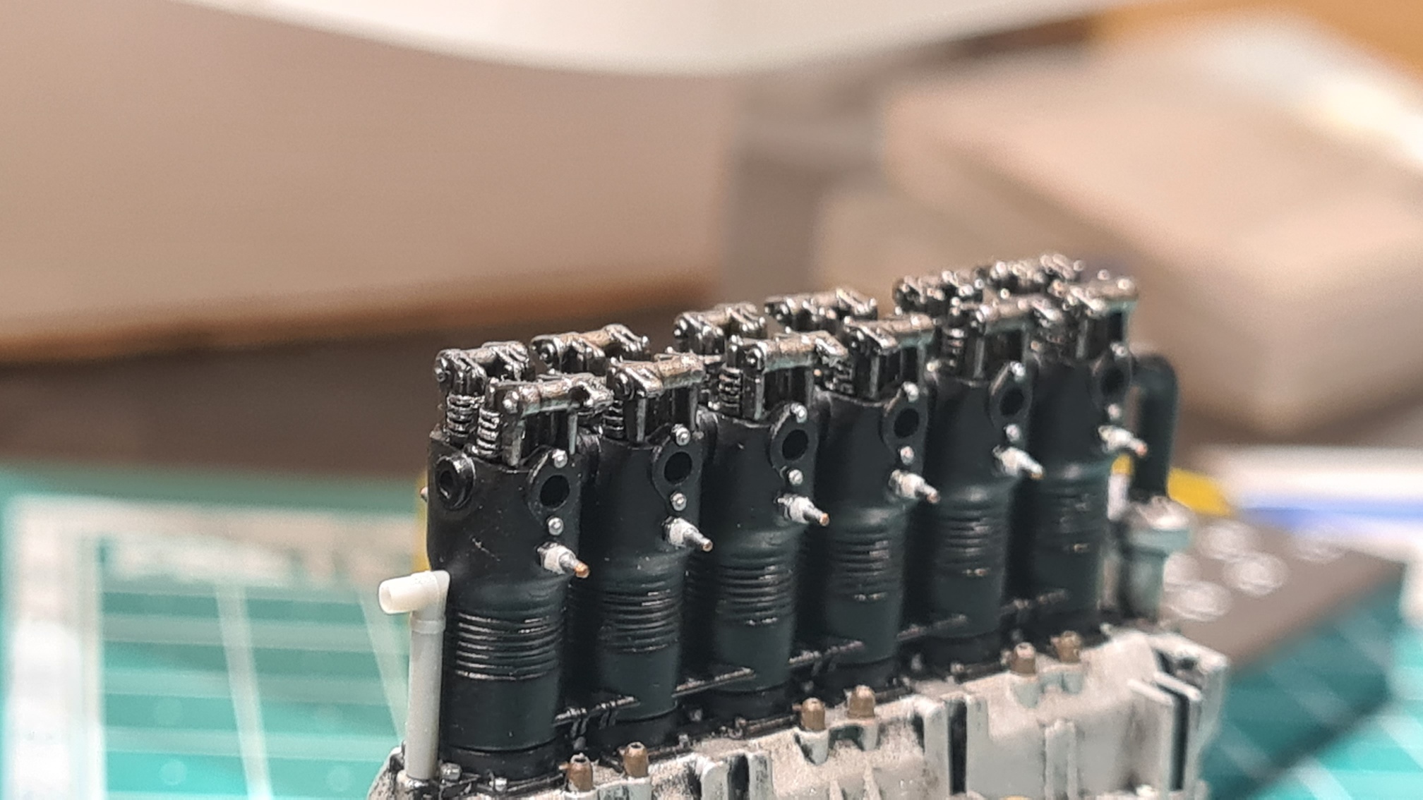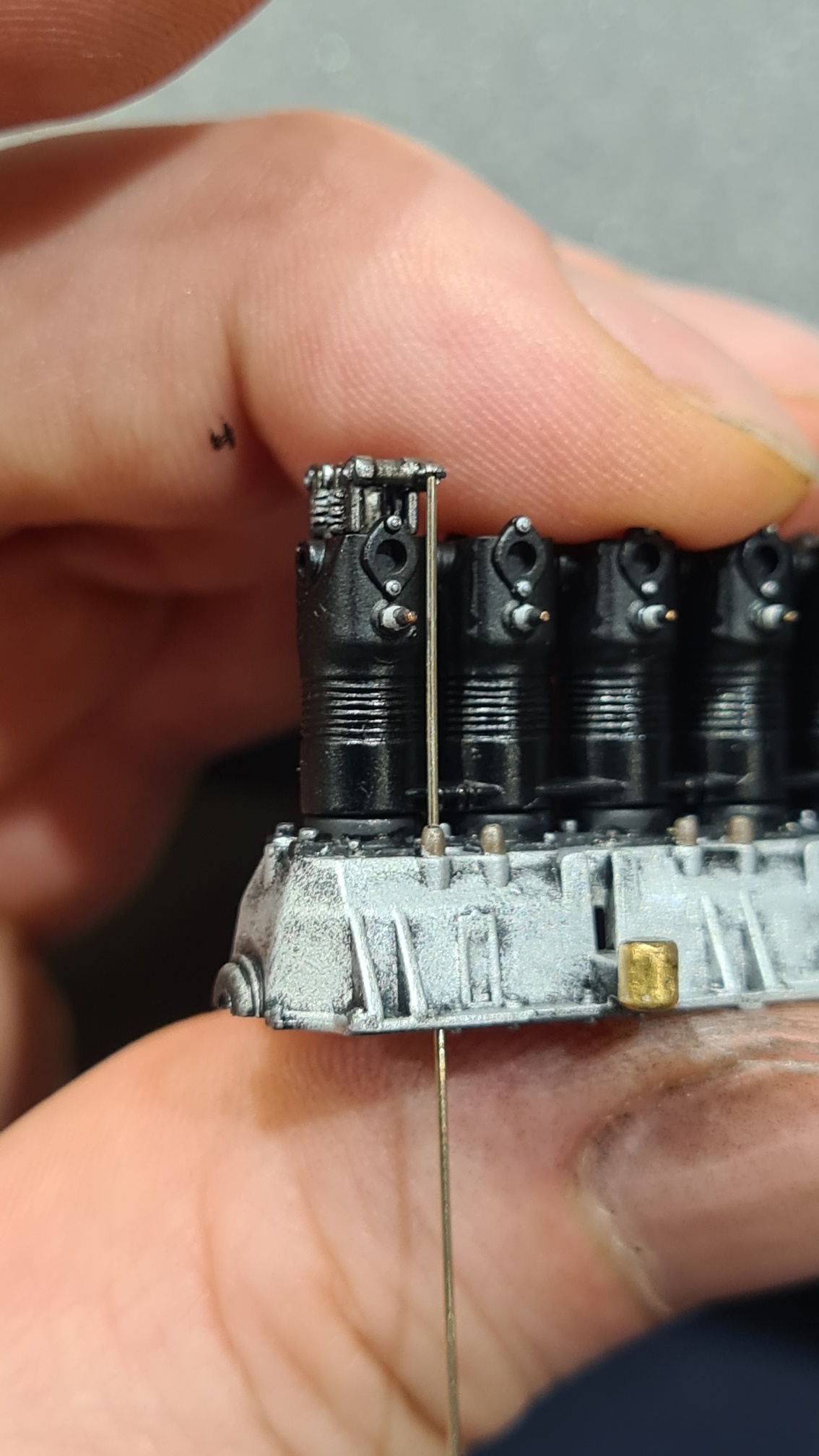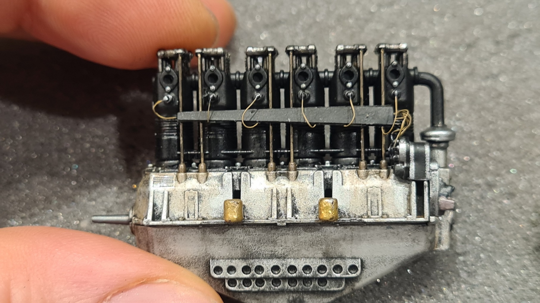 An den Zylindern wurden Details angemalt. Zündkerzen, Schrauben...