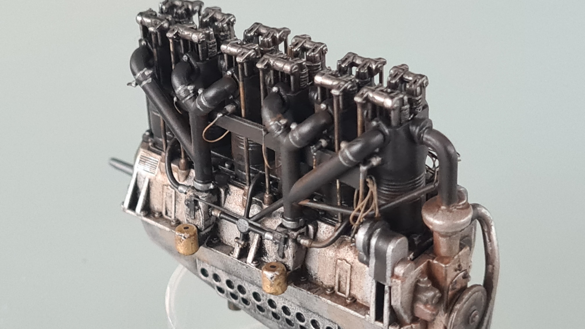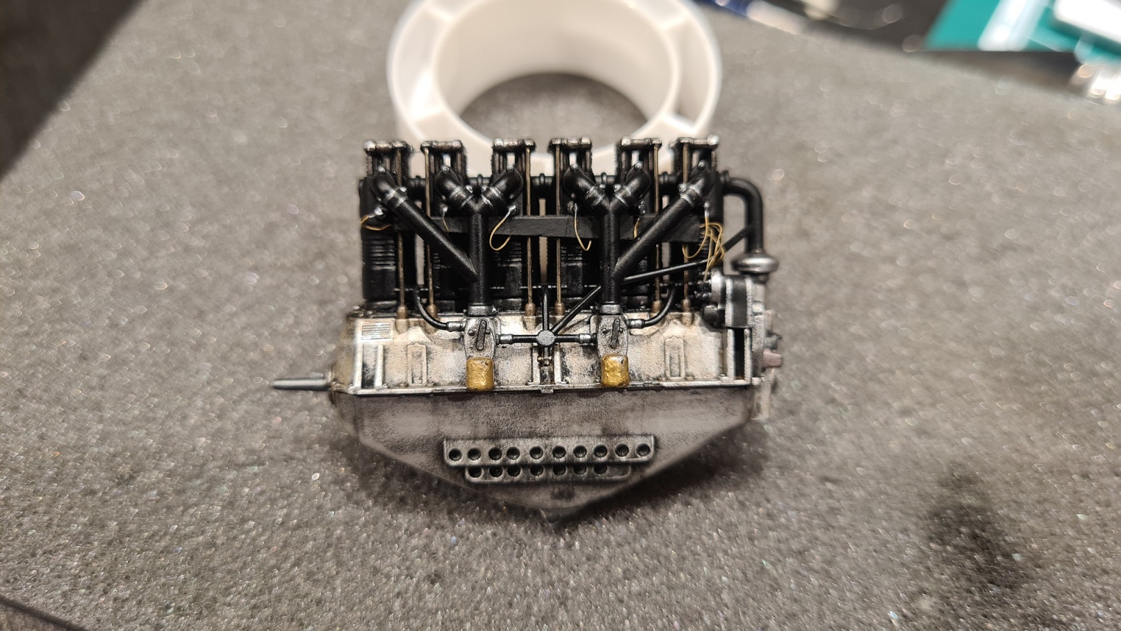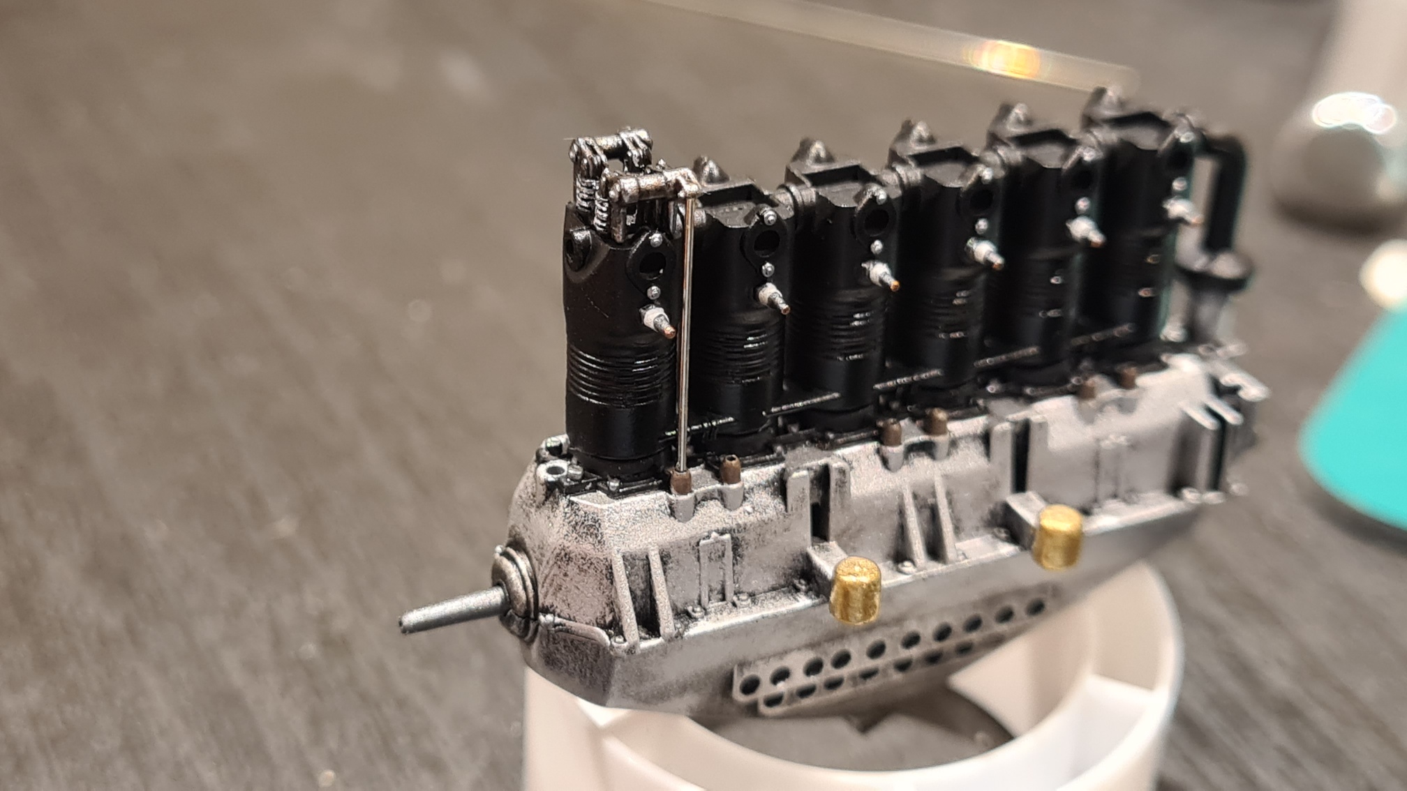 An den Zylindern wurden Details angemalt. Zündkerzen, Schrauben...