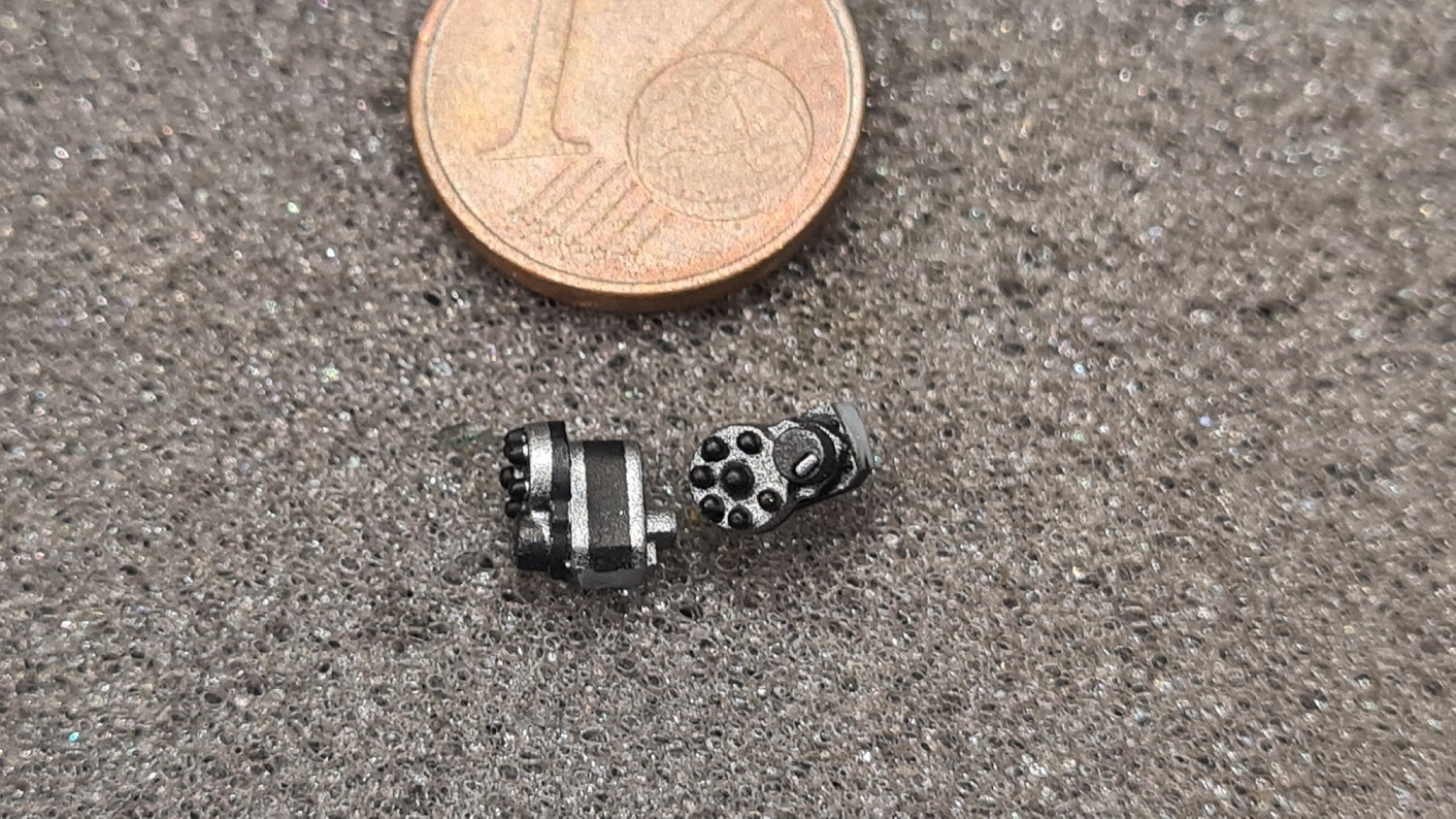 Auch die beiden Magnetos wurden vorbereitet. Erst schwarz lackiert, maskiert und dann mit gunmetal gesprüht. Rest mit dem Pinsel.