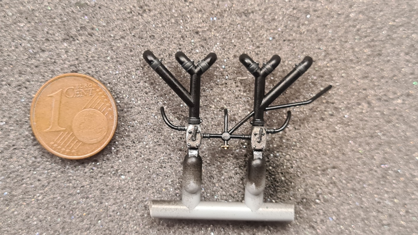Am Vergaser fehlte im Bausatz noch eine Steuerstange. Dazu habe ich einen alten PE "Gußast" genommen, passte zufällig ganz genau: