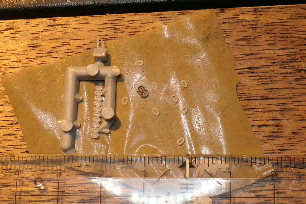 Es war viel Arbeit mit Spachtelmasse, Weinverschluss-Alu, Messingplättchen, Albion-Rohren und Drähten und zerschnittenen Ätzteilen aus 1/700er Sets. Der Schornstein wurde gleich auch noch etwas verfeinert...