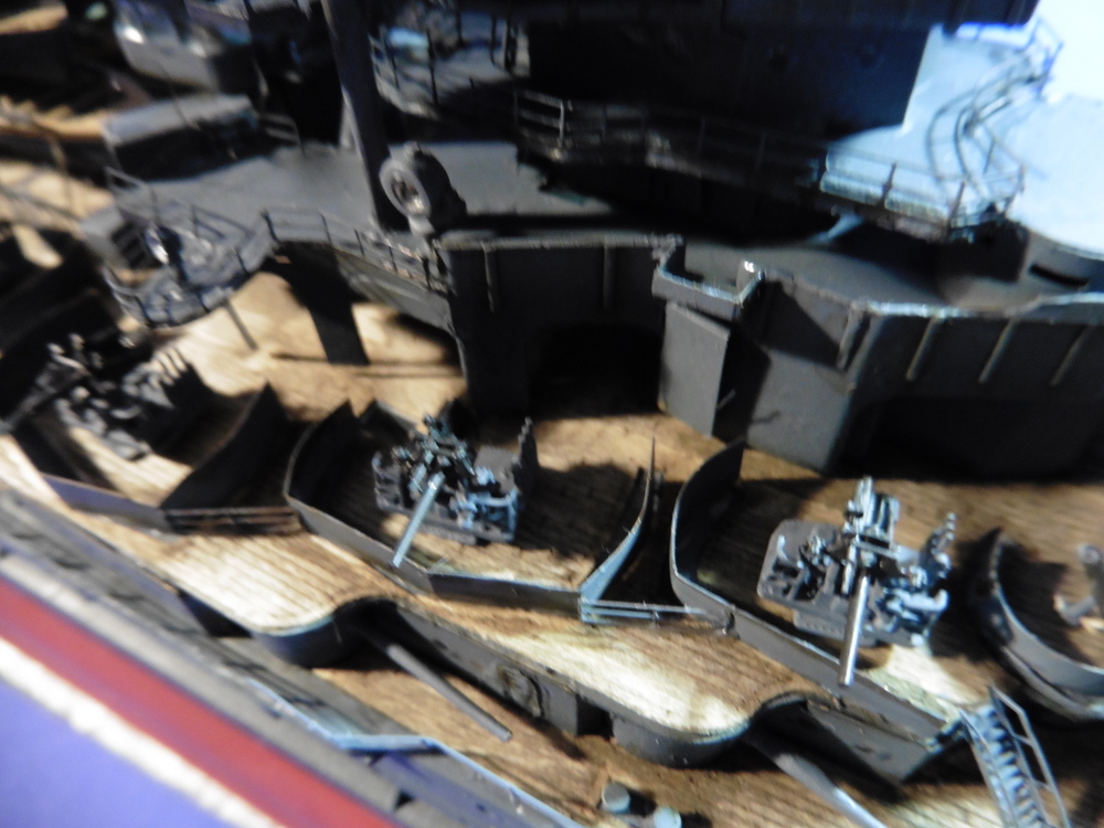 Im Detail. Das Schiff hat seine Reeling und die Flugzeuge wie auch die Katapulte bekommen .