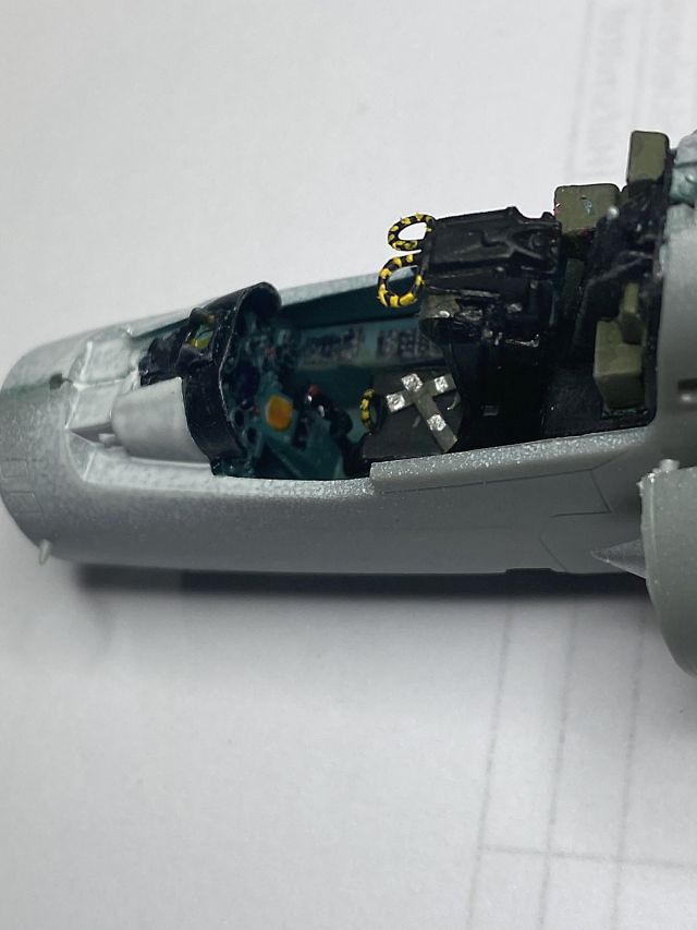 Zum Bau: Es ist ein sehr einfacher, weil auch alter Bausatz. Positionierungshilfen sind fast nicht vorhanden und die Passgenauigkeit lässt auch zu wünschen übrig. Es gab also vieles zu spachteln und zu schleifen. Trotz des Alters sind die Decals sehr gut, wenn auch nur wenige beiliegen. Ich habe noch ein paar PE teile verbaut, so im Cockpit und bei den Hauptfahrwerken.. Da das Canopy als ein Stück vorhanden war, habe ich mich gegen das Aufschneiden entschieden und das Cockpit in geschlossenem Zustand dargestellt.
