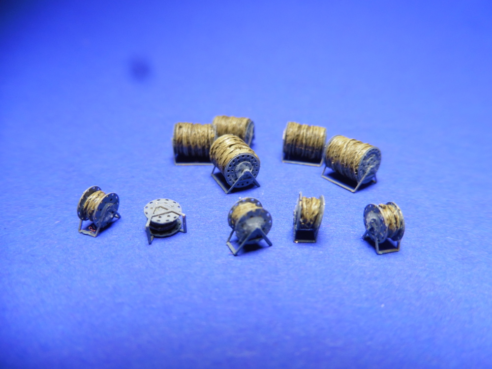 Die Seiltrommeln sind aus Resinteilen . Die Führung und Halter aus Ätzteilen .