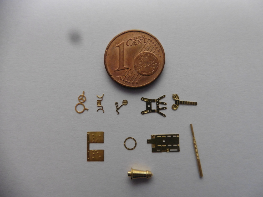 Das Ausschneiden aus der Ätzteilplatine hat schon fast 2 Std in anspruch genommen. Hier die Gesamtübersicht und dann nochmal Teile für ein einzelnes Geschütz .
