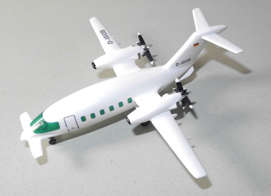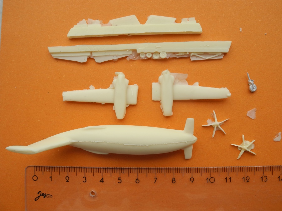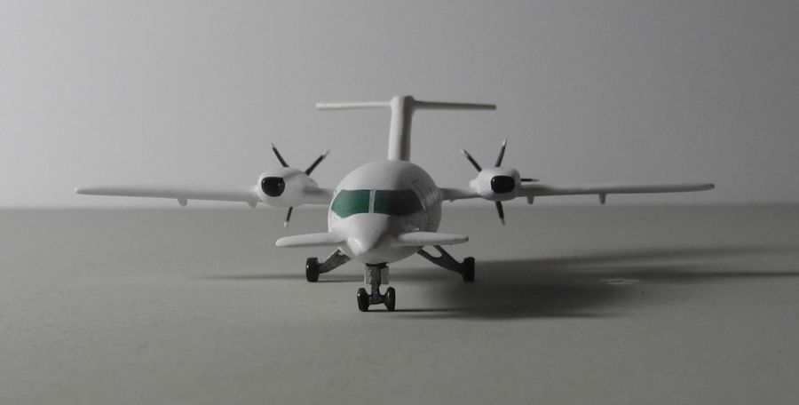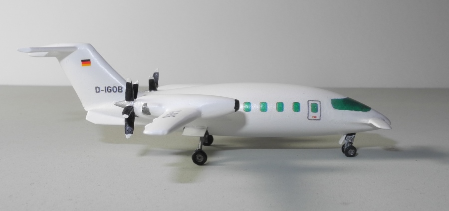 Ich bin ja selbst leider nicht sooo kreativ, aber ganz mit leeren Händen antanzen will ich auch nicht: Das hätte eigentlich ein ganz richtiges maßstäbliches Modell in 1:144 werden sollen, von der eigentlich sehr eleganten Piaggio P.180 Avanti. Aber das Basismaterial (Resin mittelspröde) hat dann meine Skills und vor allem meine Geduld nicht nur eigentlich überfordert: Aus der Perspektive der ligurischen Designer hab ich sicher auch eine Art "What-if" verbrochen!