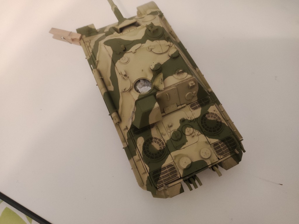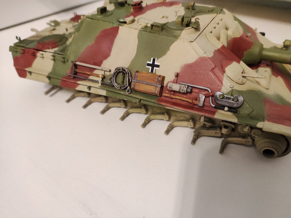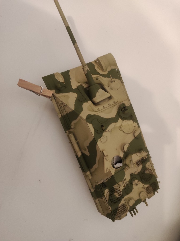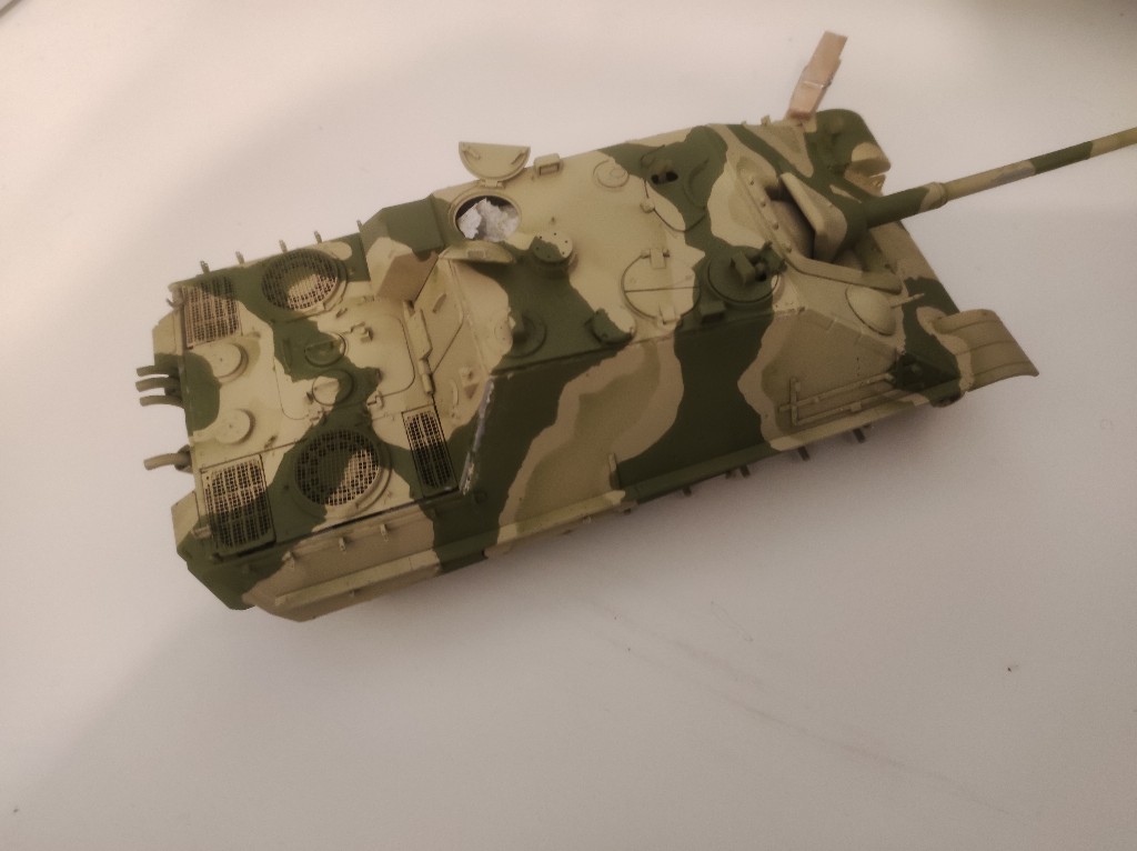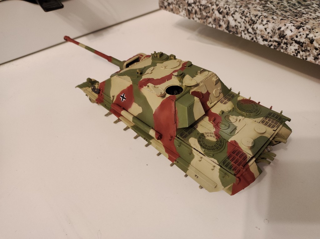 Ich finde die Lackierung ist okey geworden, nicht schlecht aber bestimmt nicht perfekt. Allerdings befinden wir uns in den letzten Tagen des Zweiten Weltkriegs und der Panzer wird auch ein ordentliches Weathering bekommen, weniger Rost, mehr Staub und Ruß.