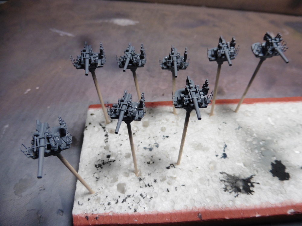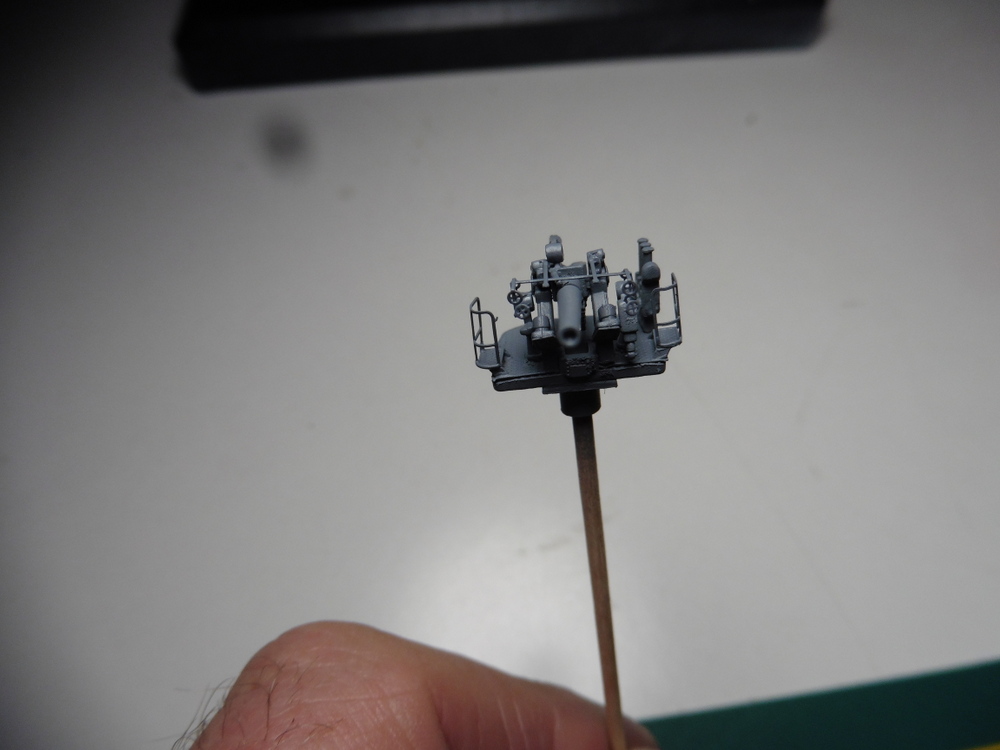 die 5'' Geschütze waren fertig und wollten Lackiert werden . Hier gabs nun keine Schwierigkeiten da einfach nur Grau . Somit Farbe in die Pistole und draufhalten :D