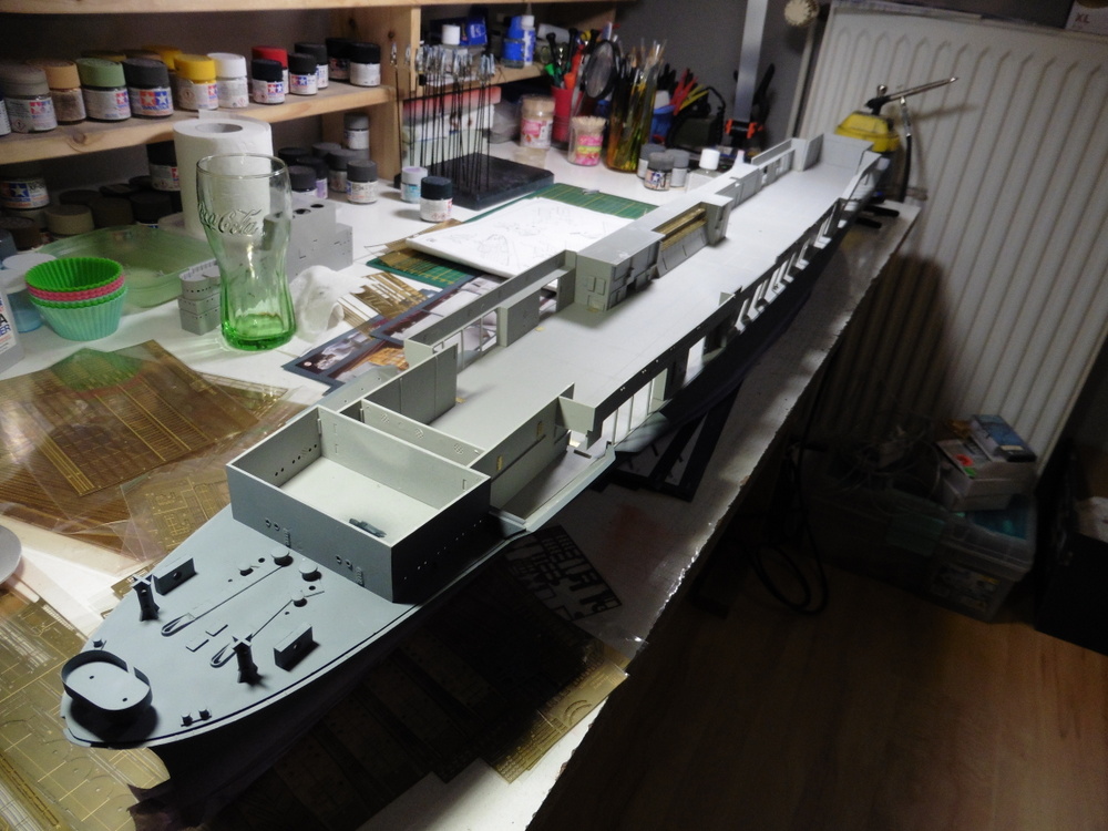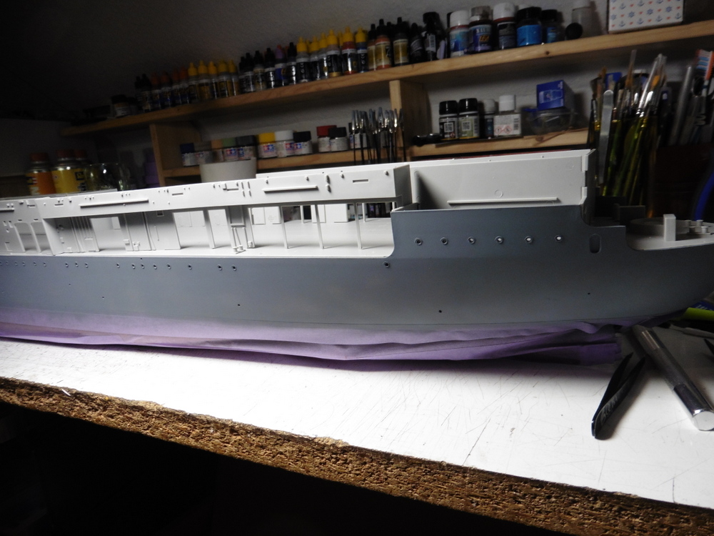 Der Vorteil , der Kleinkram ist größtenteils fertig und ich kann mich nun ums Schiff kümmern . Das dauert natürlich auch seine Zeit . Ich muss aber nicht im nachhinein noch den Kleinkram machen , was zum Ende eines Baus dann eher husch-husch geschieht und ggf fertig gepfuscht wird weil man ja fertig werden will .Daher mein Ansatz den Bau so zu beginnen.