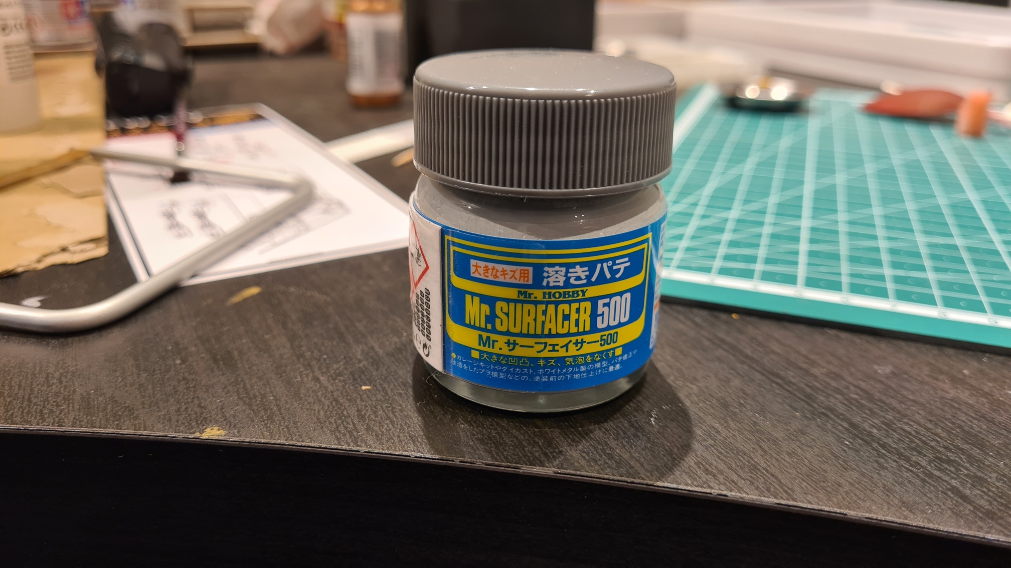 Shit happens, gerade fertig, hab ich mit eine Macke reingemacht. Nochmal rot drüber genebelt, noch sichtbar, nochmal drüber, weiter sichtbar. Diese Farbe verzeiht echt keine Fehler. Am Ende war der Farbauftrag zu dick und es sah wieder nicht homogen aus. Vielleicht bügelt es der Glanzlack aus (Tamiya Clear X22)? Nein. Läuft super.