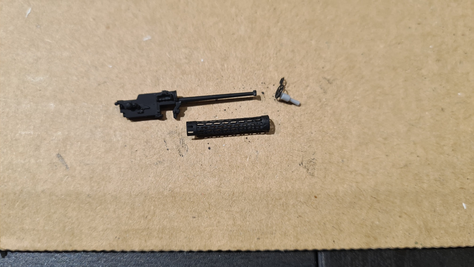 Hier ein Foto mit dem gerollten Objekt und den weiteren Teilen, die zum MG gehören.