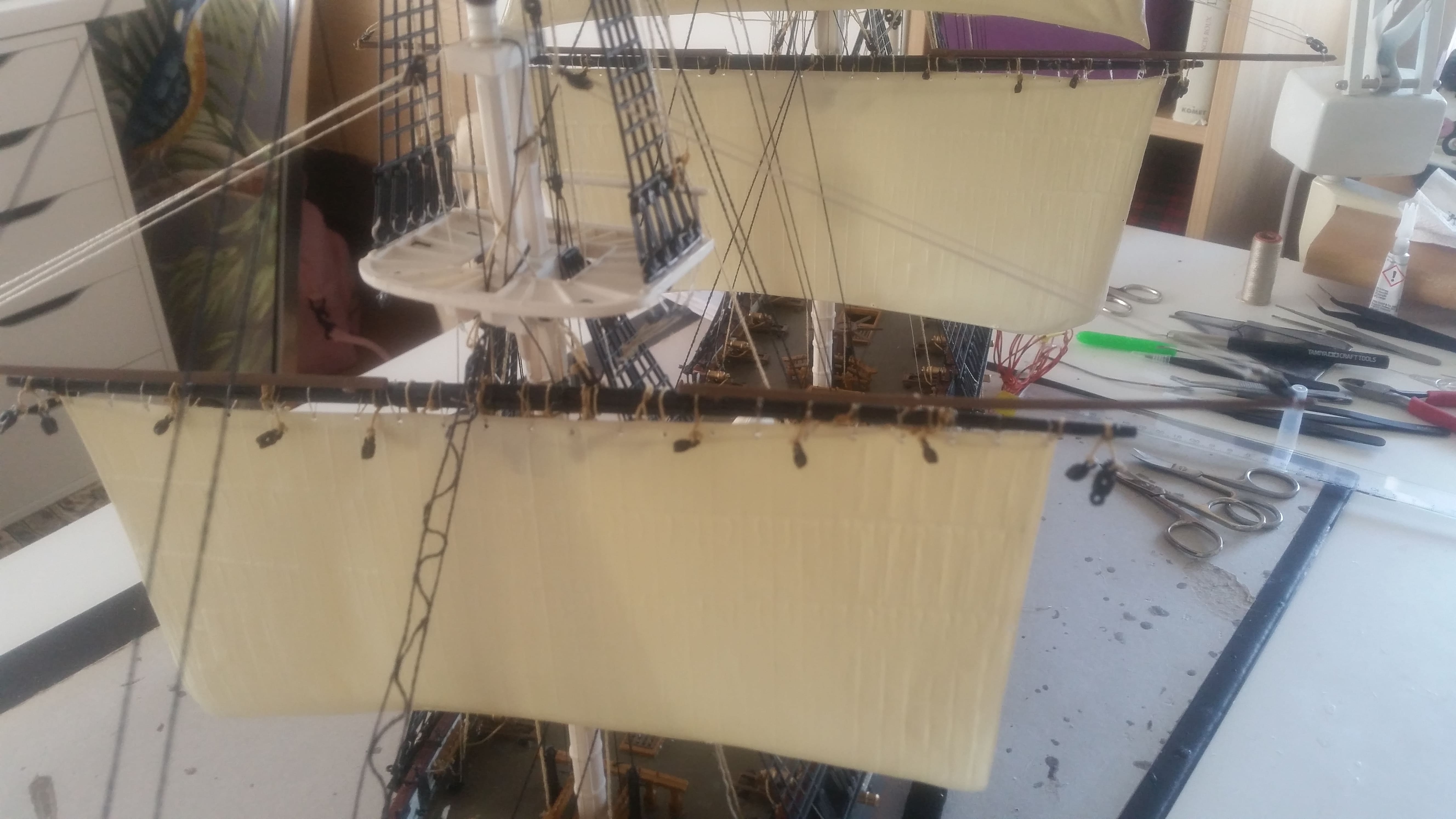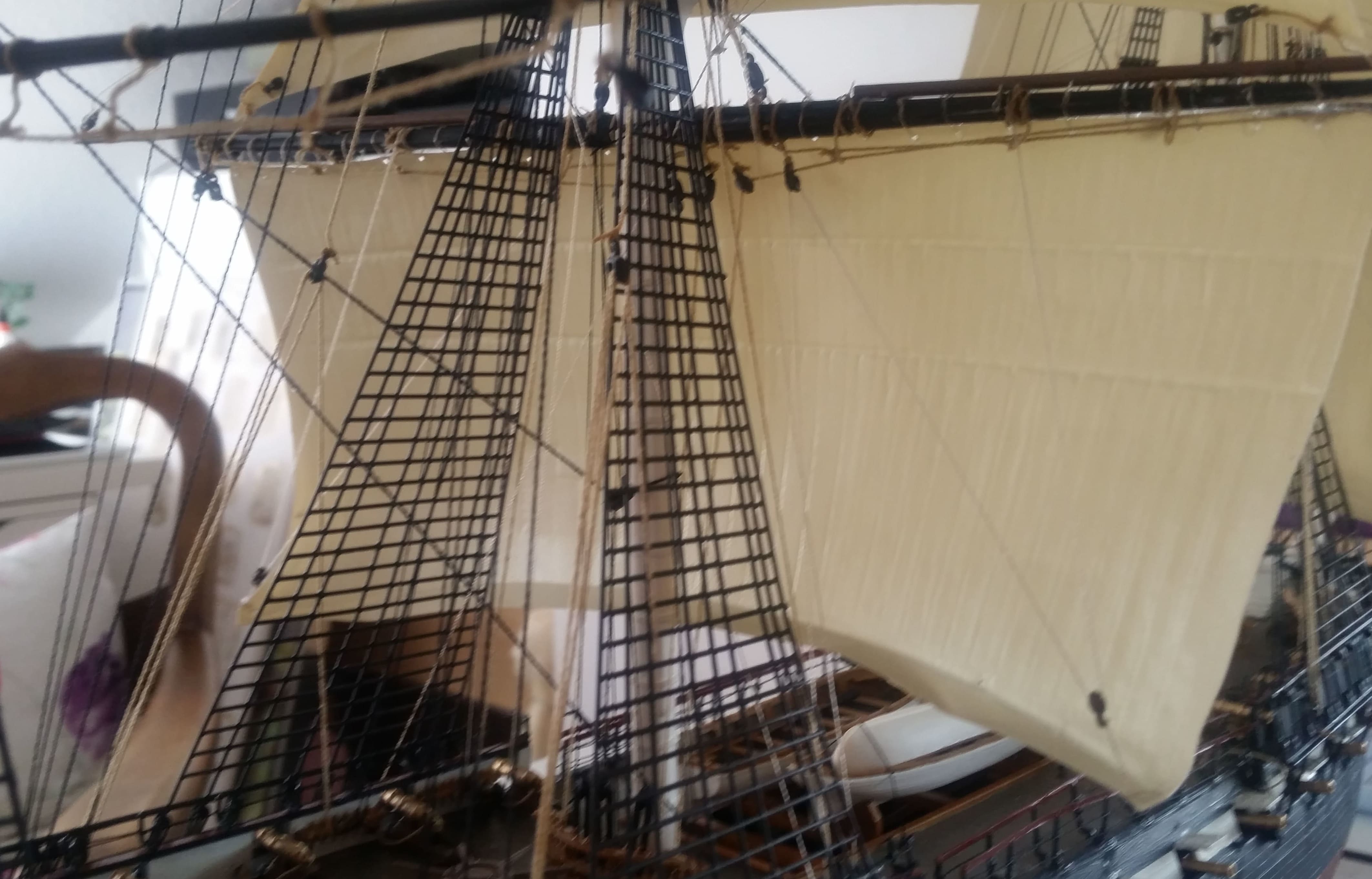 Das ist schon wahnsinnig gut wie du die Glorieux getakelt hast. Da bin ich noch meilenweit von entfernt. Bei mir ist das längst nicht so sauber. Allerdings ist es auch mein erster Großsegler und mit dem bisherigen Ergebnis bin ich selber doch recht zufrieden.