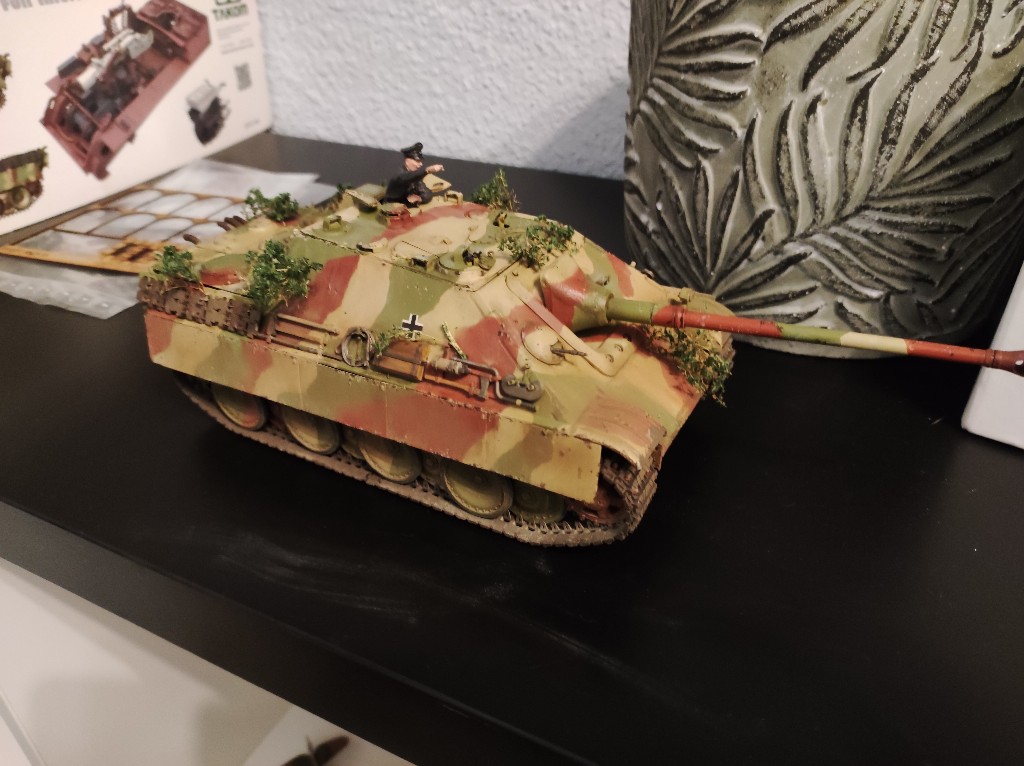 Bevor ich ins Bett gehe, wollte ich euch noch dem Jagdpanther zeigen. Der Panzer selber scheint mir jetzt fertig zu sein. Etwas Tarnmaterial hat das Fahrzeug auch bekommen