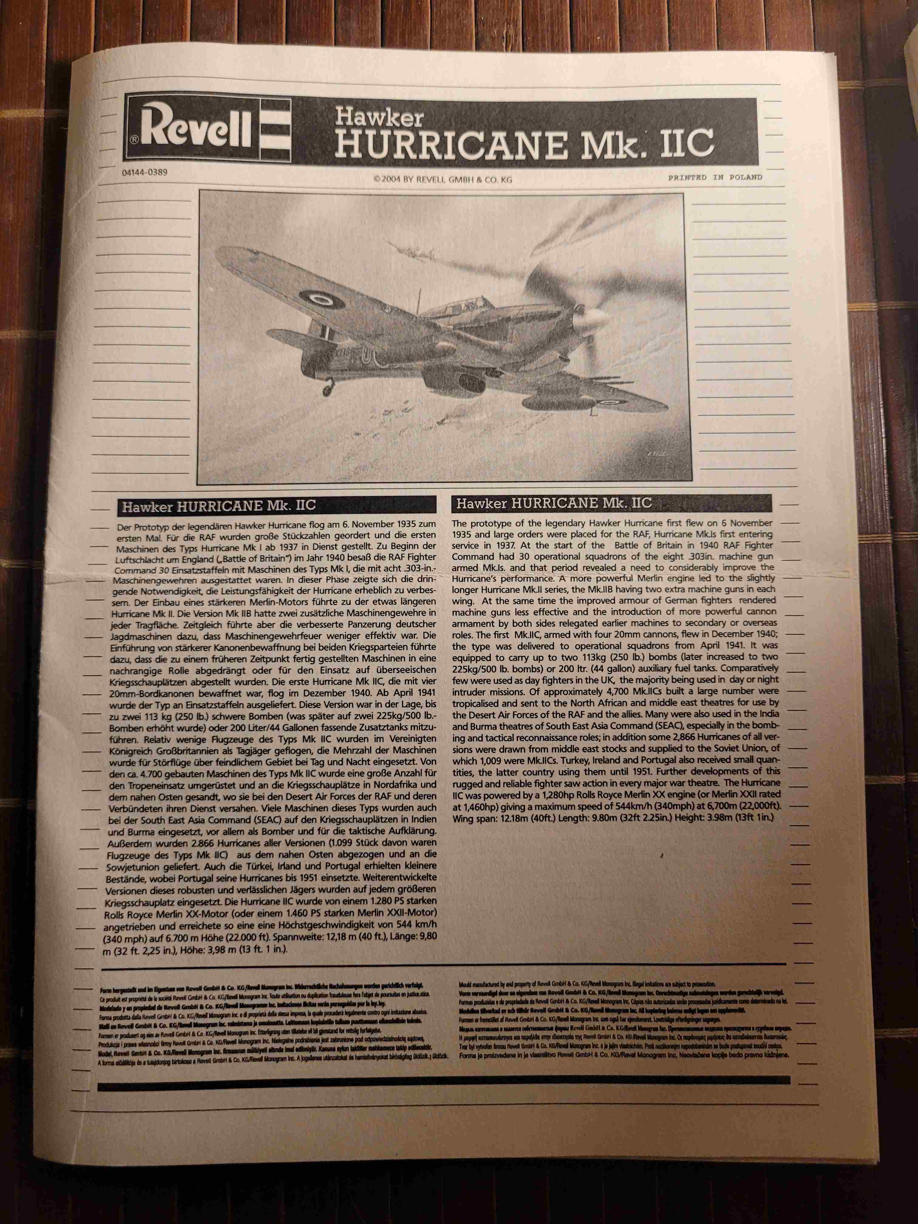 Die legendäre Hawker Hurricane erzielte ihre größten Erfolge 1940 in der Luftschlacht um England und war auf allen Kriegsschauplätzen anzutreffen. Schwer bewaffnet mit 20mm-Kanonen konnte die Mk. IIC-Version auch mit Bomben und Zusatztanks bestückt werden. Insgesamt wurden mehr als 4700 Maschinen des Typs Mk. IIC gebaut.
