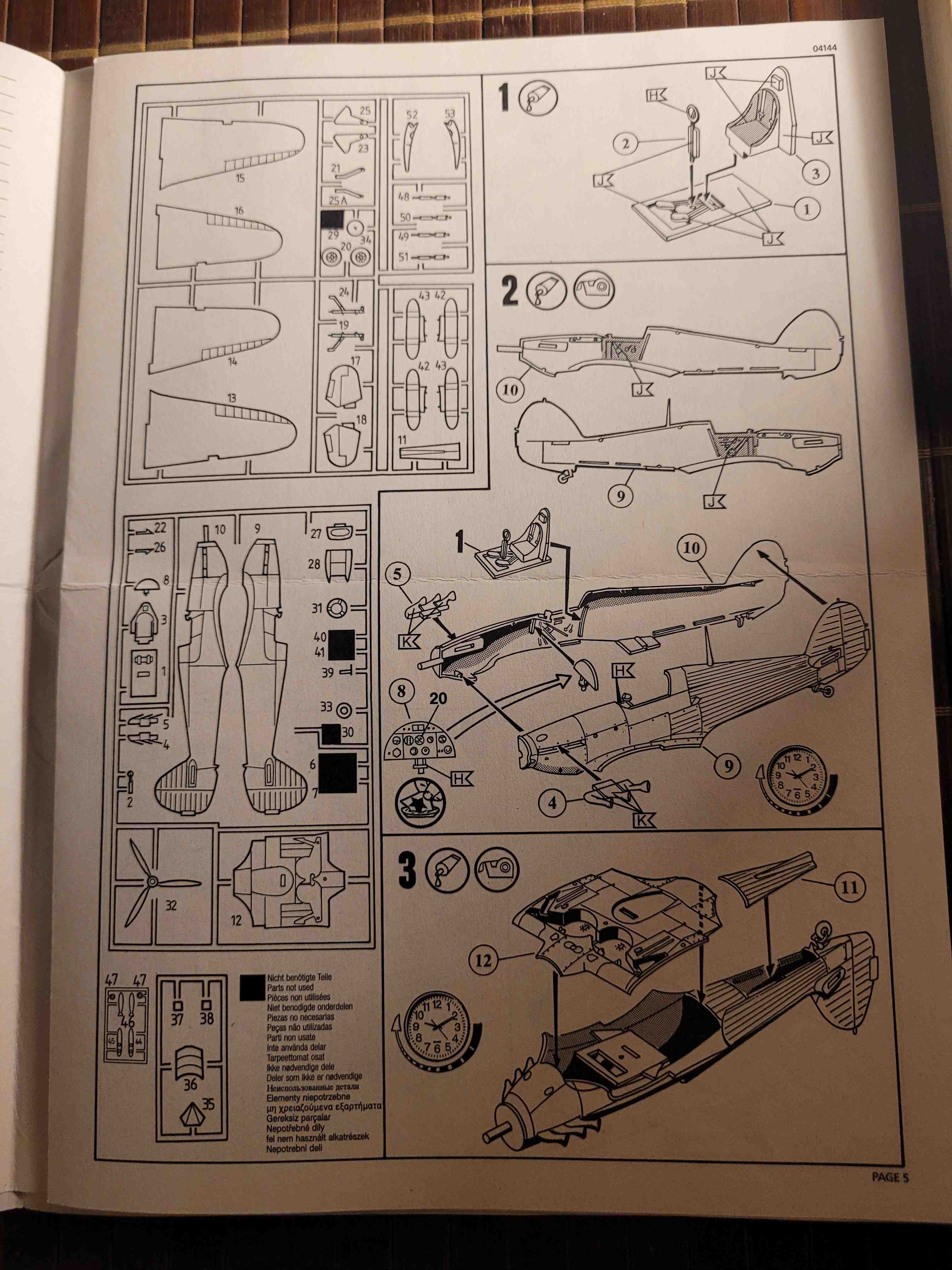 Bei Skill Level 3 erwarten uns 53 Bauteile (ohne Decals), die auf fünf Spritzlinge plus Klarsichtteile aufgeteilt sind.