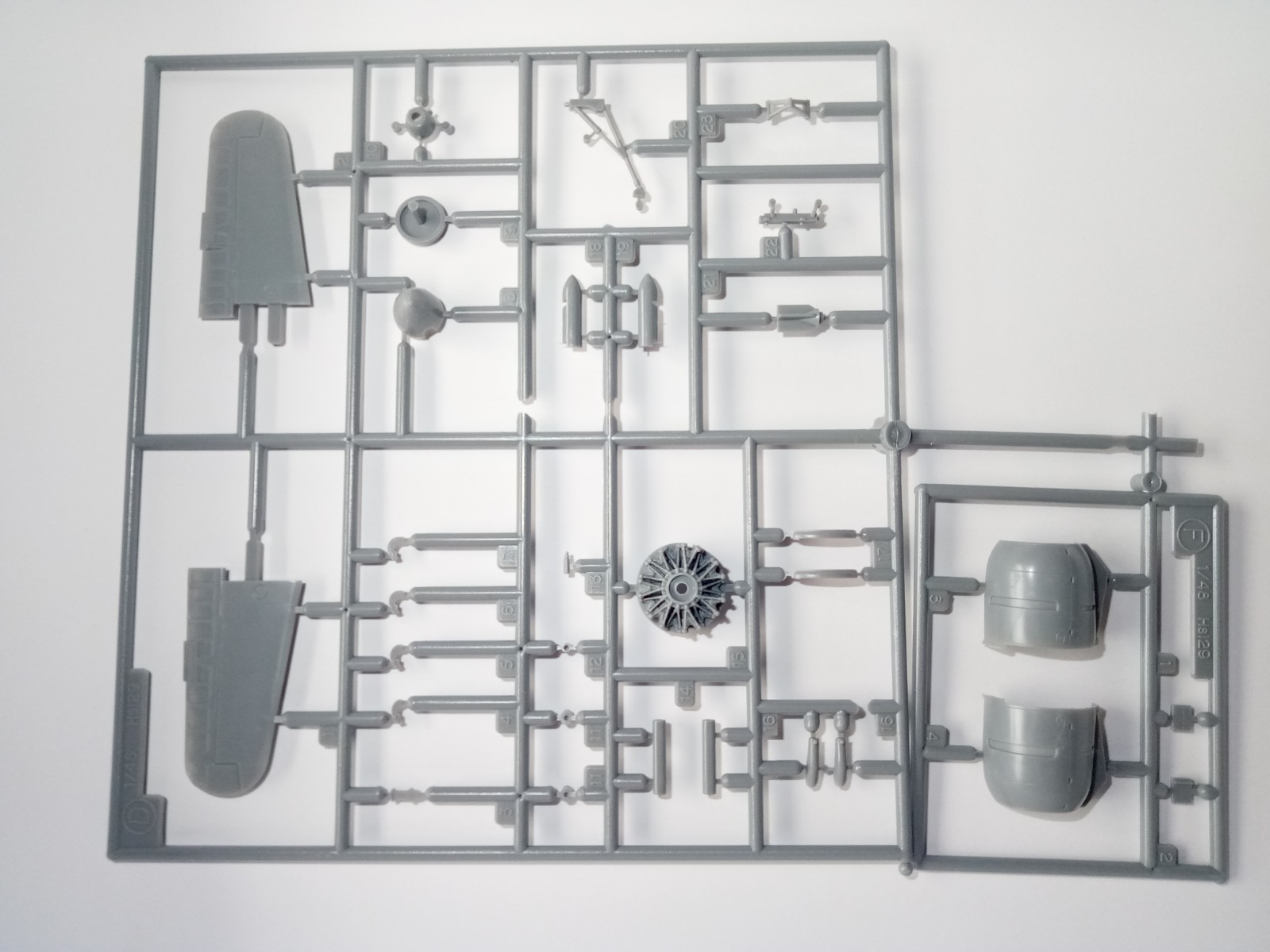 Der Bausatz kommt in 128 Einzelteilen, aufgeteilt auf 7 Spritzrahmen daher.
