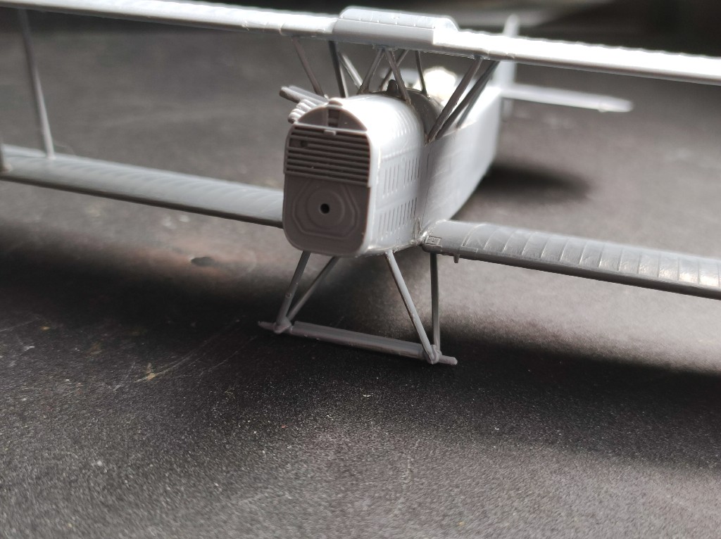 Am Oberflügel sind sämtliche Querstreben angebracht wurden. Hier mussten neben den Angusspunkten aber auch die Trennnähte versäubert werden.