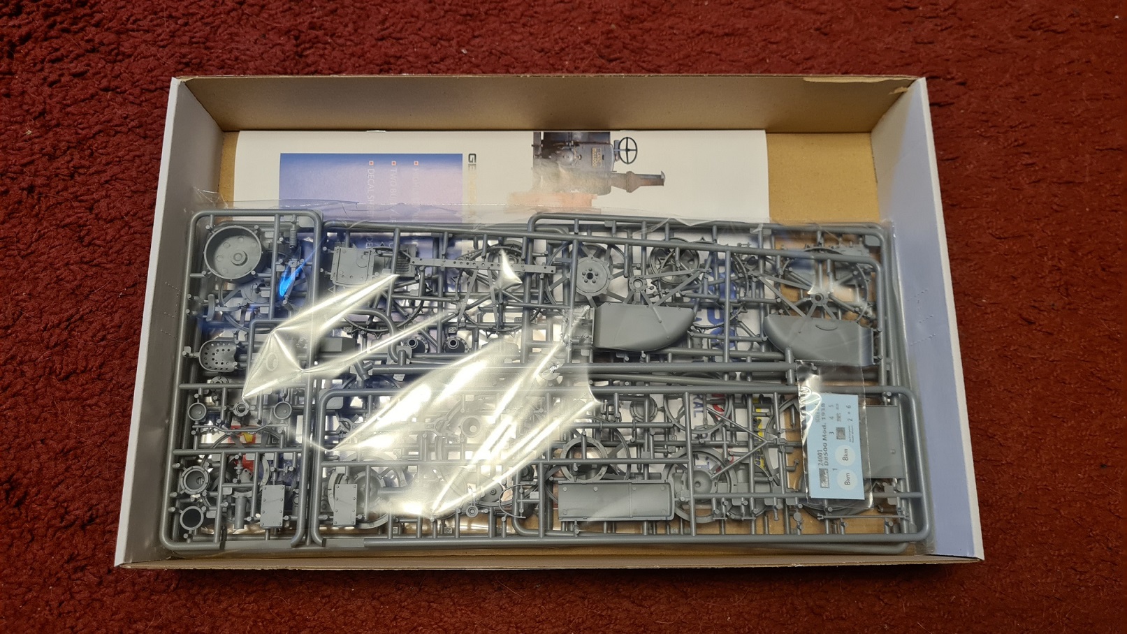 Öffnet man den Karton, so findet man 5 Spritzgussrahmen, einen kleinen Decal-Bogen und die Anleitung.