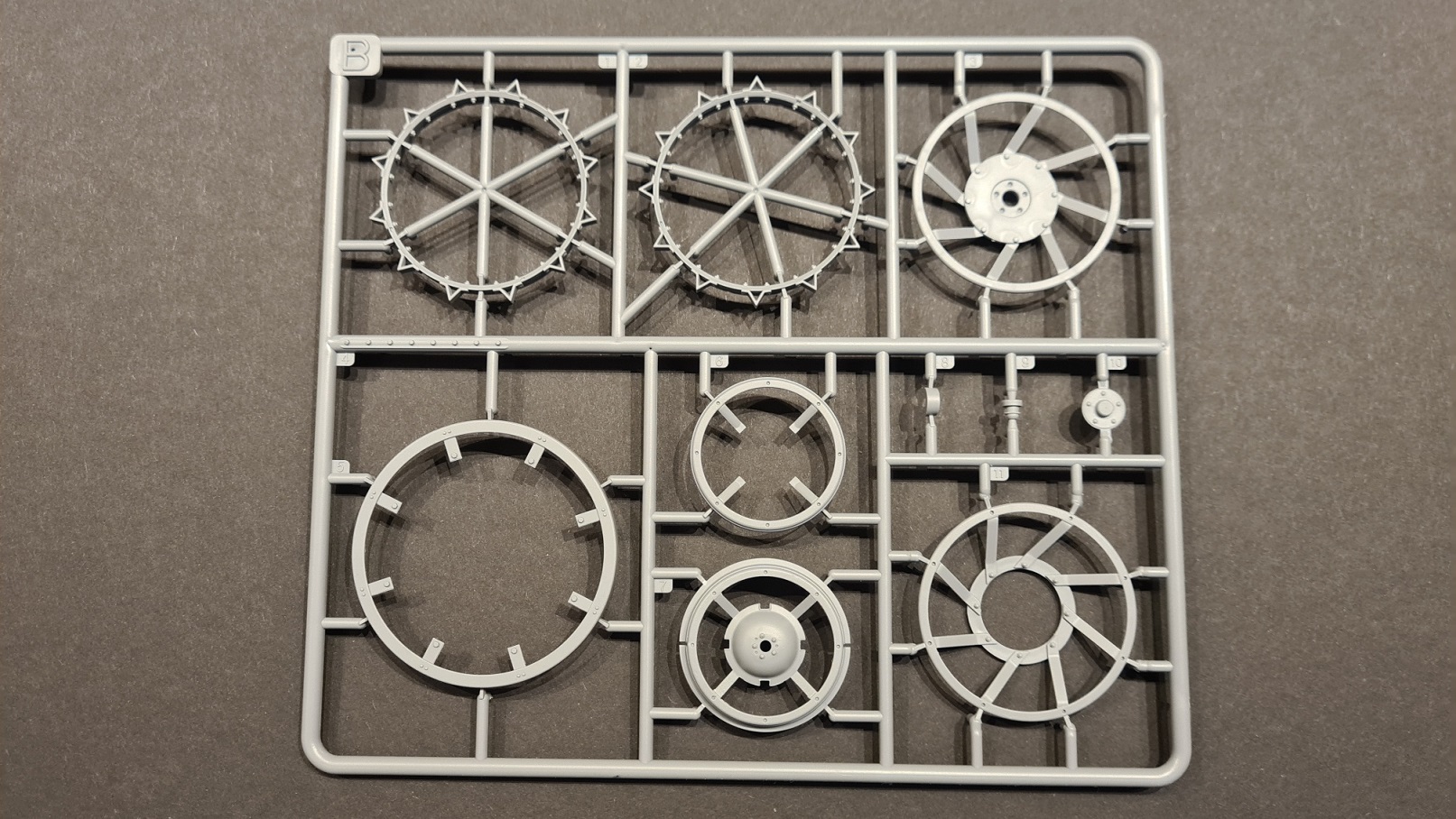 Hier kommen die Räder. Nachfolgender Spritzgussrahmen ist doppelt vorhanden:
