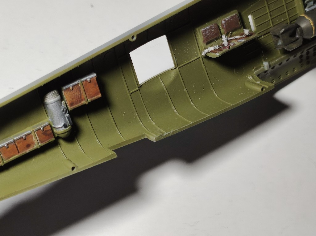 Die beiden Rumpfhälften verbringen verschiedene Schränke. Für 1:72 ist das was man hier dargestellt hat ausreichend. Bilder vom Original zeigen aber deutlich mehr Gegenstände die im inneren noch zu finden sind.