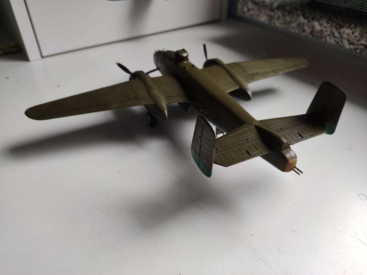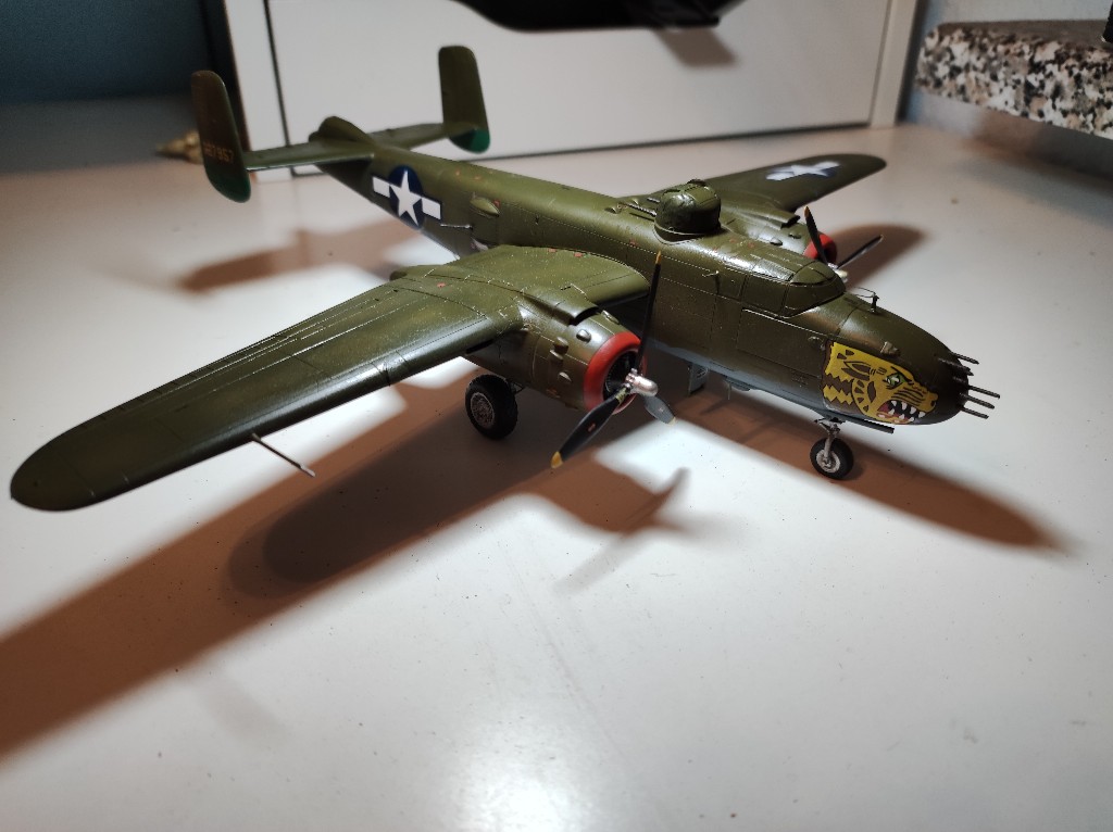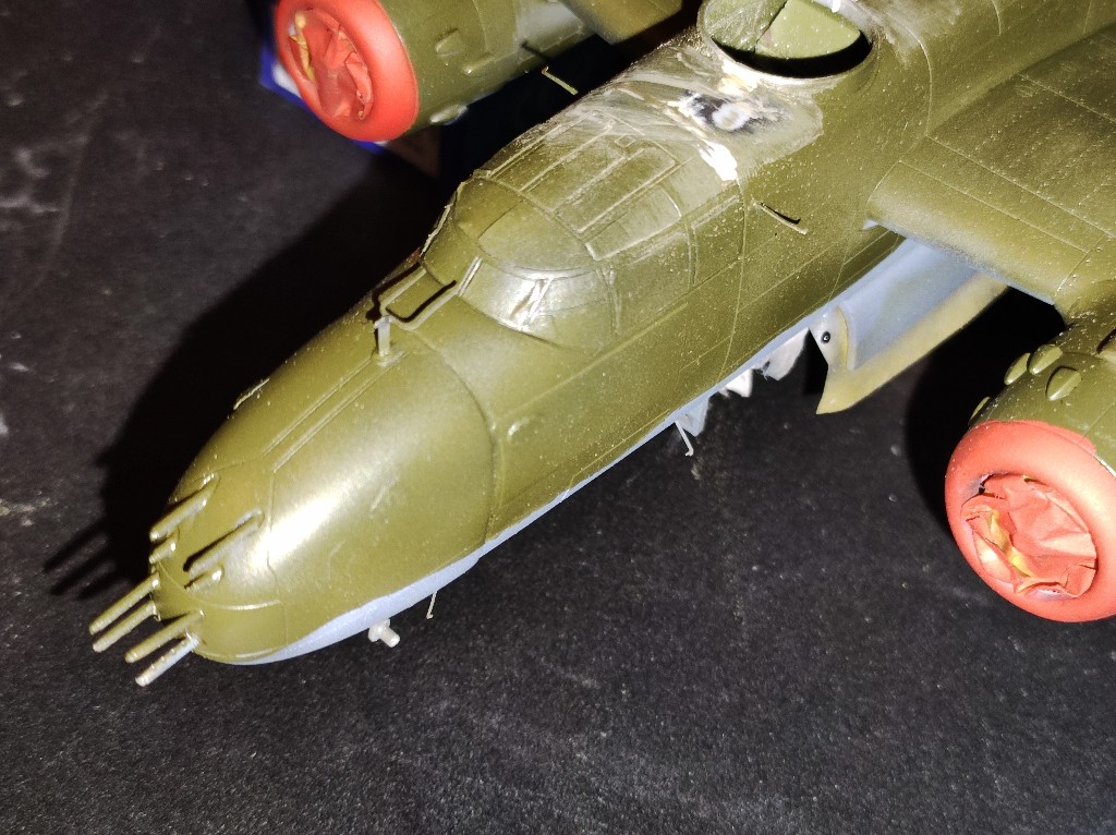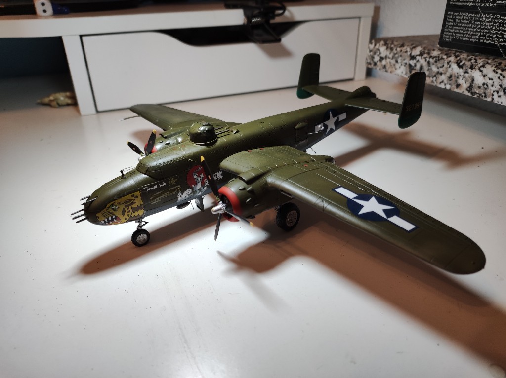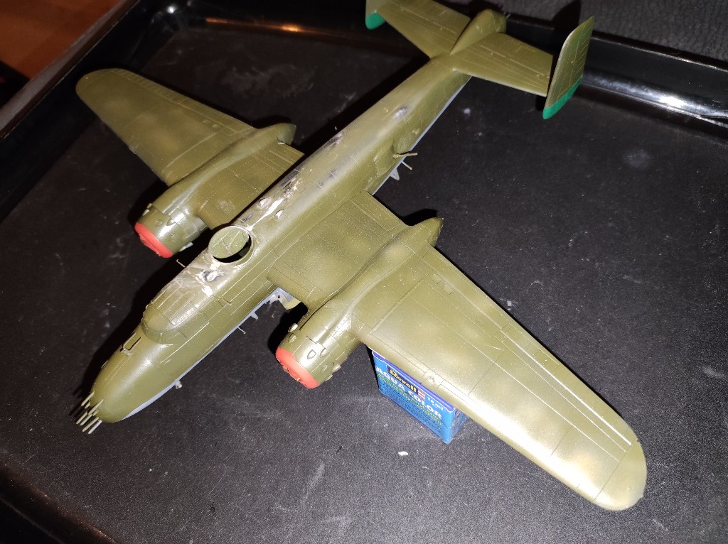 So es ging los mit der B-25 im inneren. Der Hasegawabausatz ist nicht mehr der jüngste und viele Bauteile wirken irgendwie sehr grob.