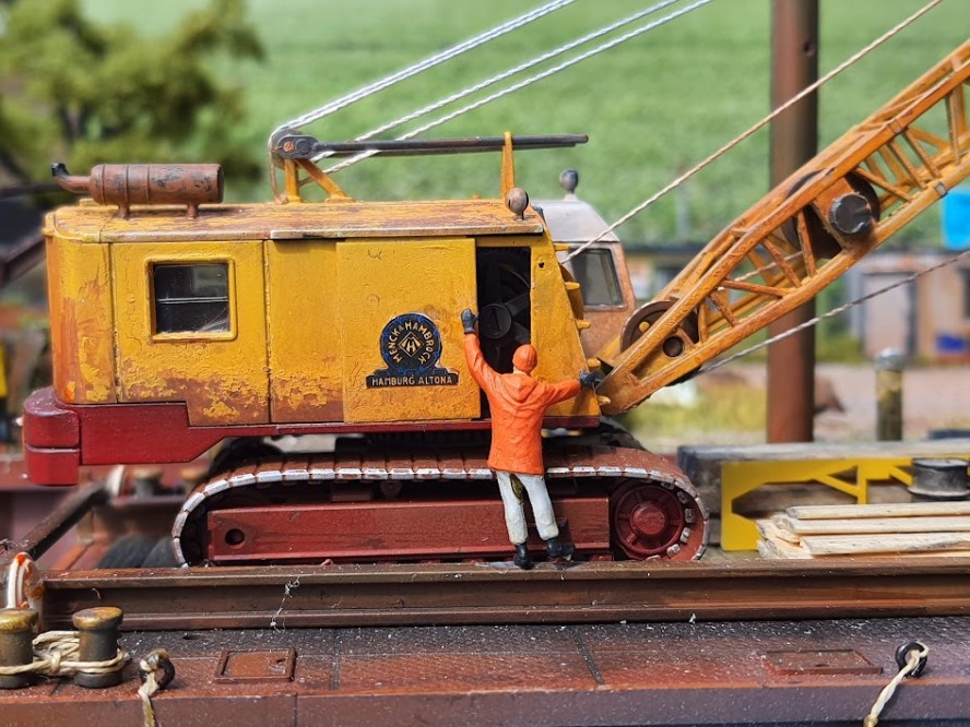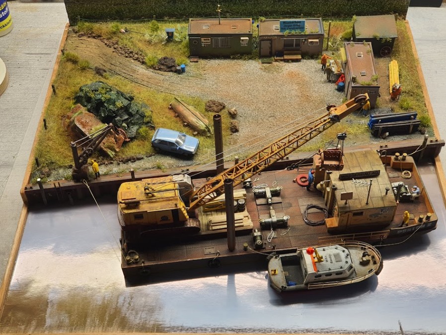 Der Haufen mit Basaltblöcken (zur Uferbefestigung) besteht aus Splitt und ist ,mit Heißkleber, auf einen Styrodur Block aufgeklebt.