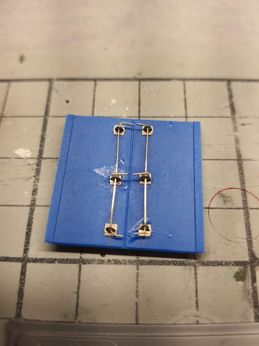 Zur Darstellung der Rohre, die auf den Lagerplätzen liegen, habe ich farbigen Schrumpfschlauch verwendet. Die Lagergestelle bestehen aus Streichhölzern.