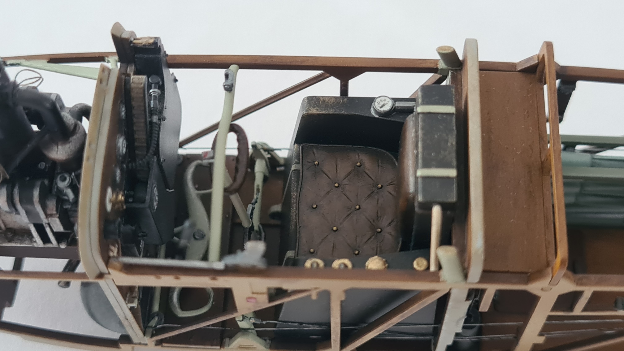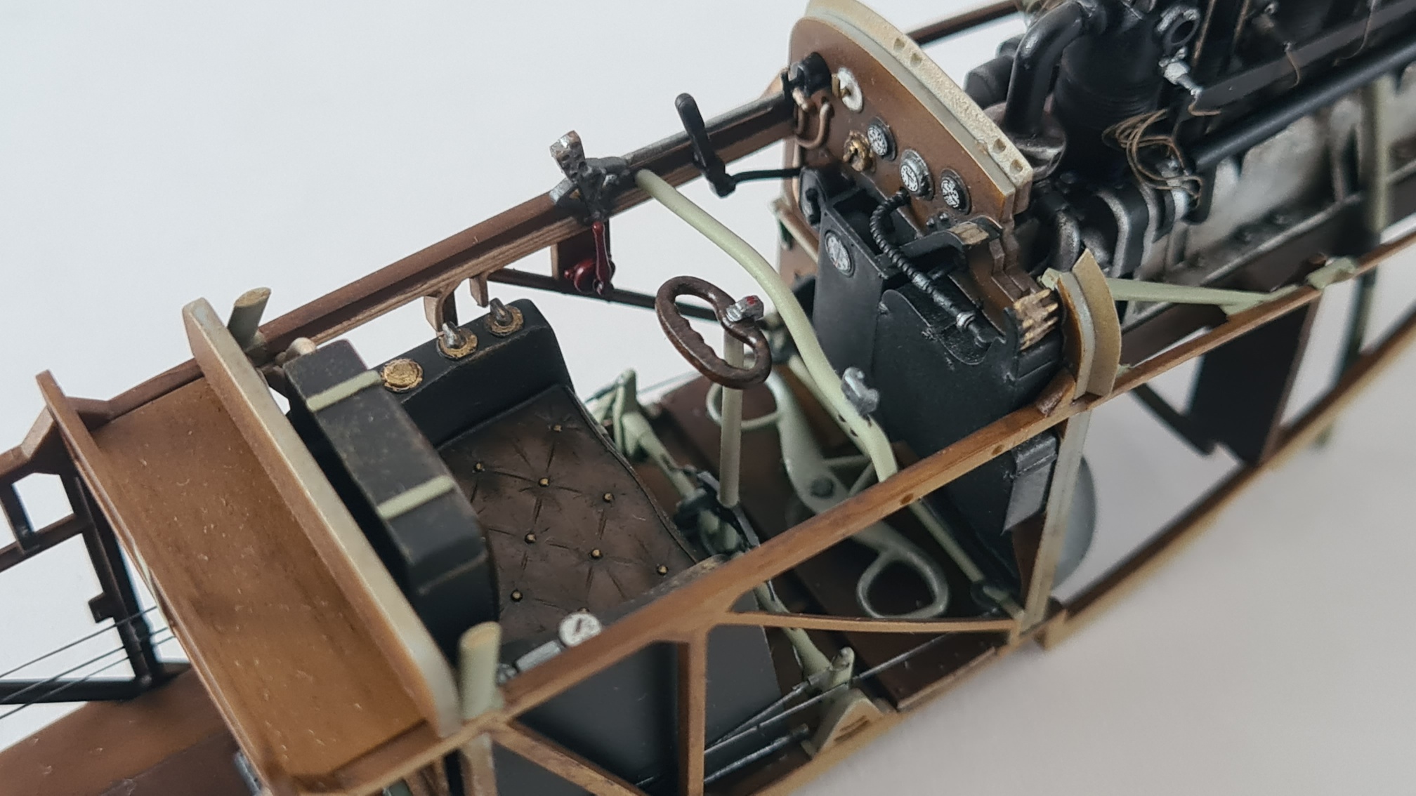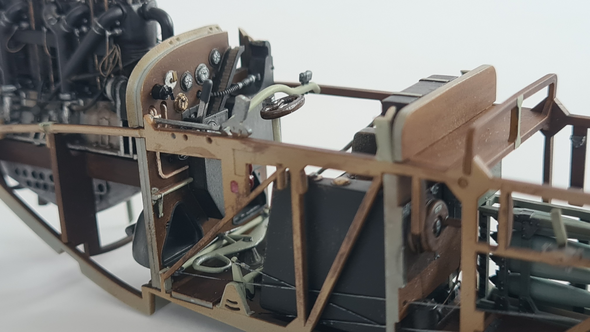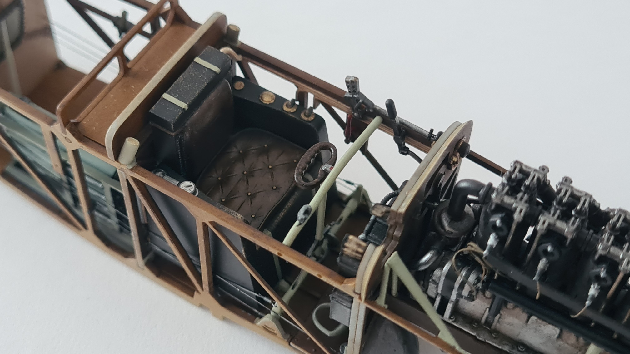 Der Motor brauchte extra Aufmerksamkeit, da hier einige Details fehlten. Die Ventilfedern mussten "nachgeschnitzt" werden, Zündkabelkanäle waren nicht vorhanden, Ventilstangen wurden scratch-eingebaut.
