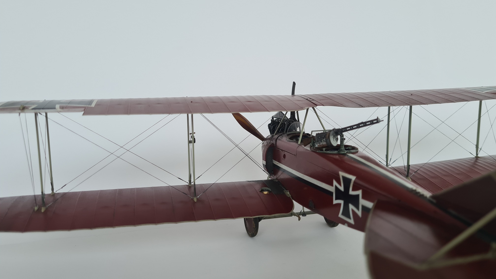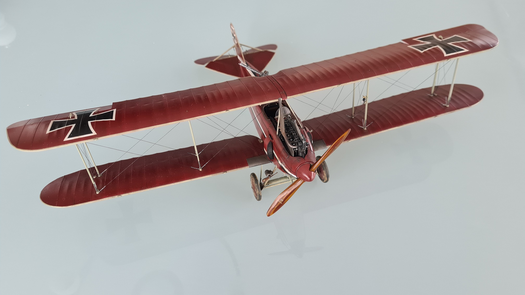 Der Bausatz von Wingnut Wings ist ein Träumchen und das Ergebnis ist ein wirklich sehr edles und stolzes Modell. Ist natürlich Geschmackssache, aber ich finde das Flugzeug insbesondere in der dargestellten Farbe wirklich außergewöhnlich schön und ästhetisch.