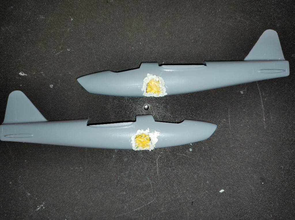 Dann habe ich die Flügeln vorbereitet. Das war nötig damit ich sehen konnte was von den Flügelwurzeln am Rumpf entfernt werden muss. Ergebnis: alles. Da die Flügel der Version 2 größer und breiter sind, als in der Ersten.