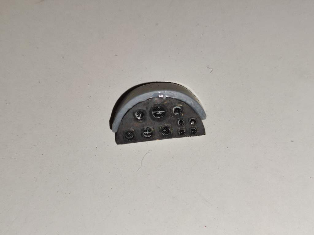 Nachdem ich das Cockpit zusammengesetzt haben, habe ich auch das Instrumentbrett aus den beiliegenden PE-Teilen verbaut.