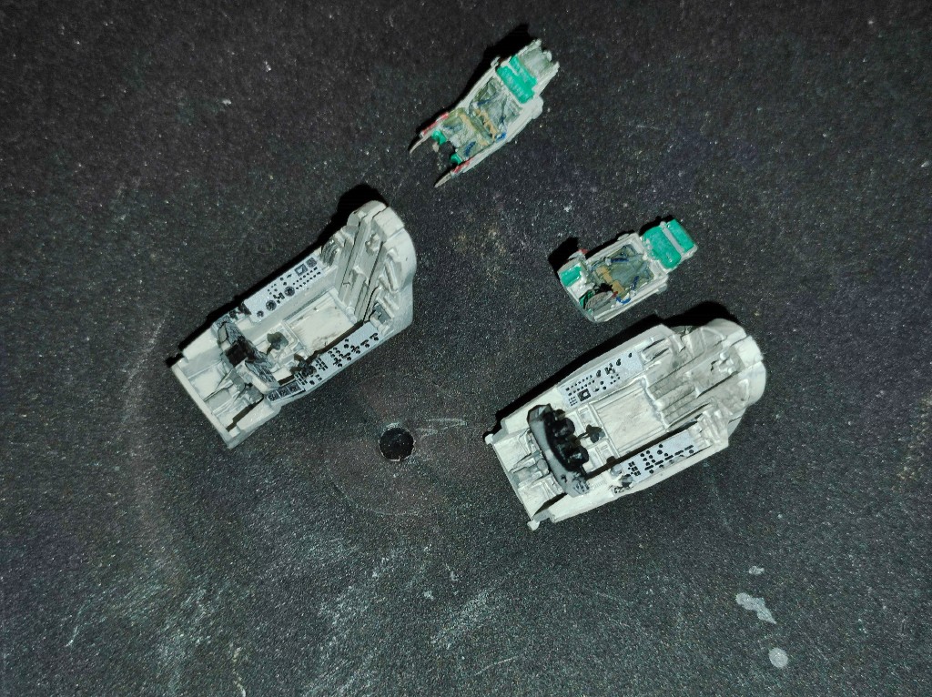 Die Sitze wurden ebenfalls bemalt. Ich brauche aber nur einen, der zweite sitz wird dann der Pilot aus dem Set mit der Crew mitbringen ;)