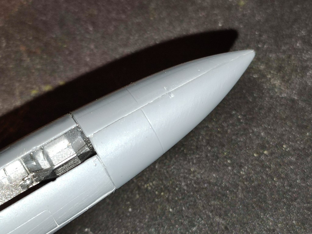 Die seperate Nase ist in sich nochmal geteilt unduss hier an den Übergängen auch bearbeiten werden. Die genaue Passung am Rumpf ist leider nur so semi.