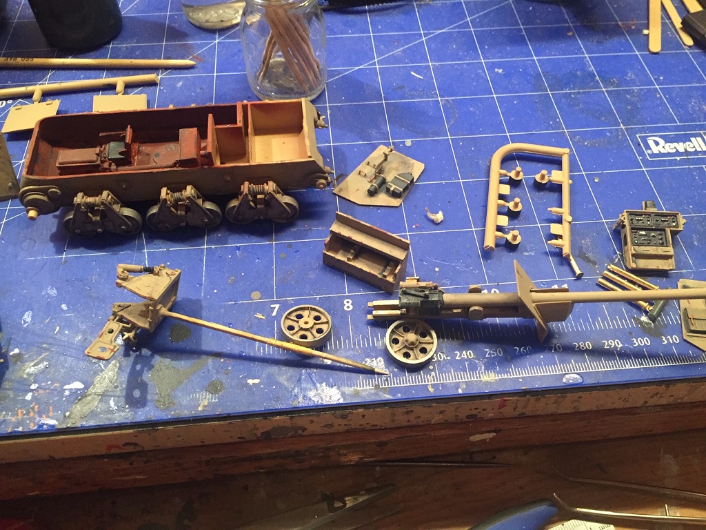 1972 brachte Tamiya die 8,8 cm Flak und das Sd.Kfz. 7 heraus. Und beide Modelle landeten in dem Jahr unter unserem Weihnachtsbaum. Am ersten Weihnachtstag habe ich mit dem Bau begonnen und Neujahr drehte das Gespann ( die frühen Modelle von Tamiya hatten immer einen E-Motor ) noch ohne Farbe seine Runden im Wohnzimmer.