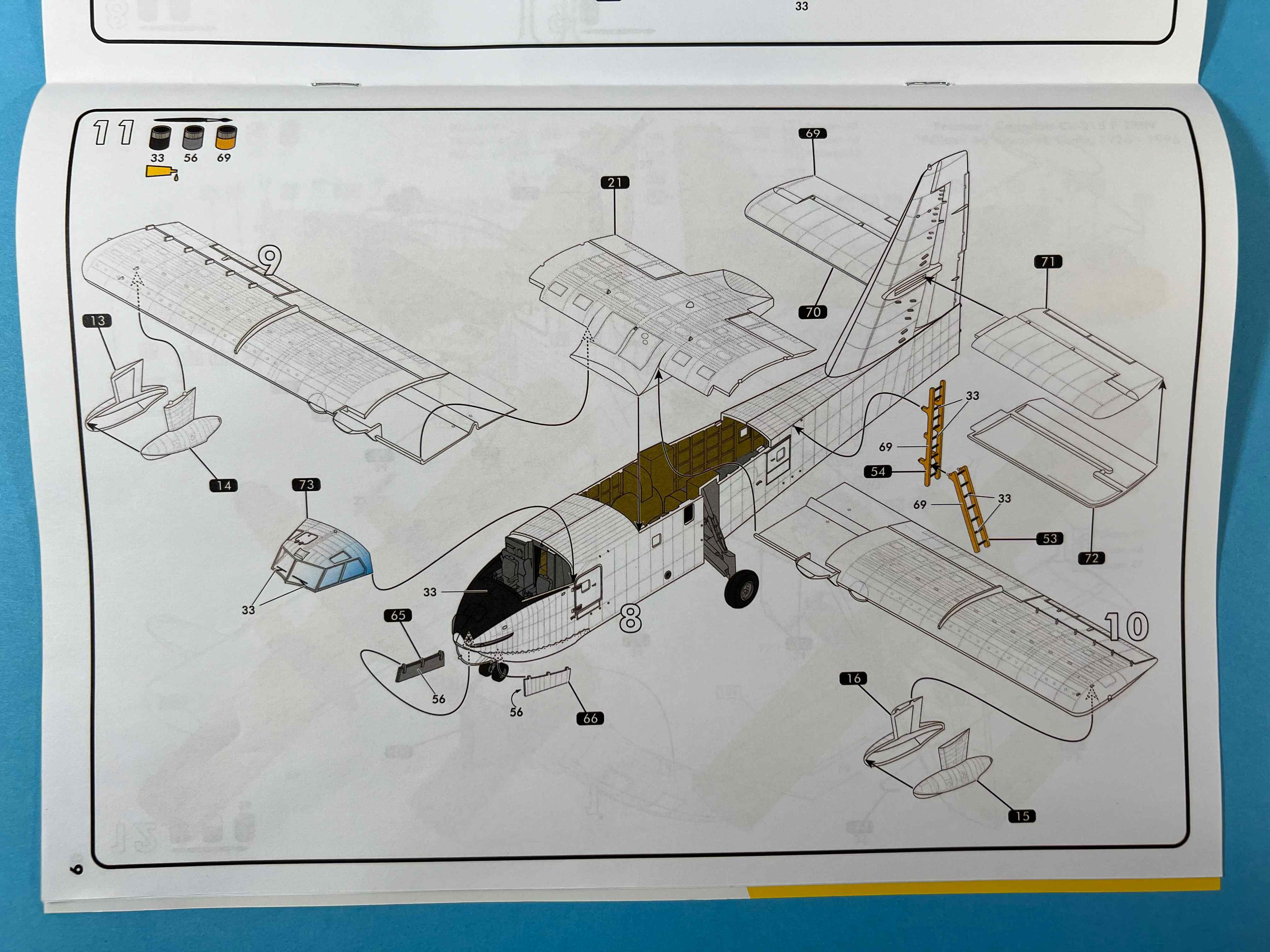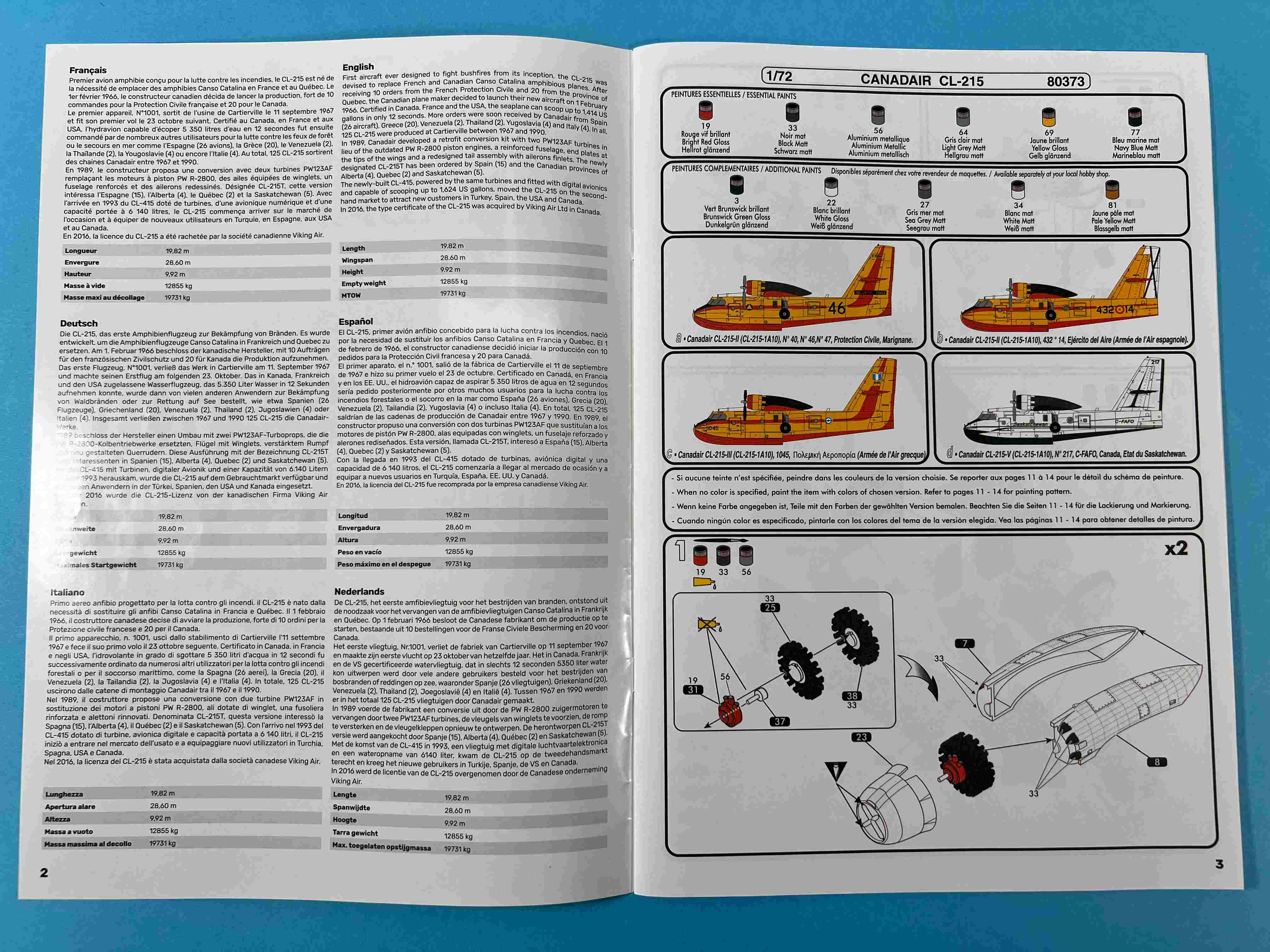 Zusätzlich zur Anleitung bekommt man einen kleinen Modell-Katalog mit weiteren Flugzeugmodell und eine Postkarte die noch mal das (wie ich finde) schöne Box-Art zeigt und auf der Rückseite die technischen Infos des Flugzeugs aufgedruckt hat.