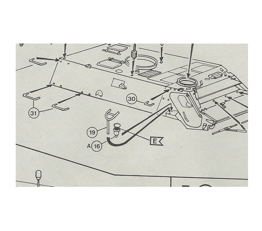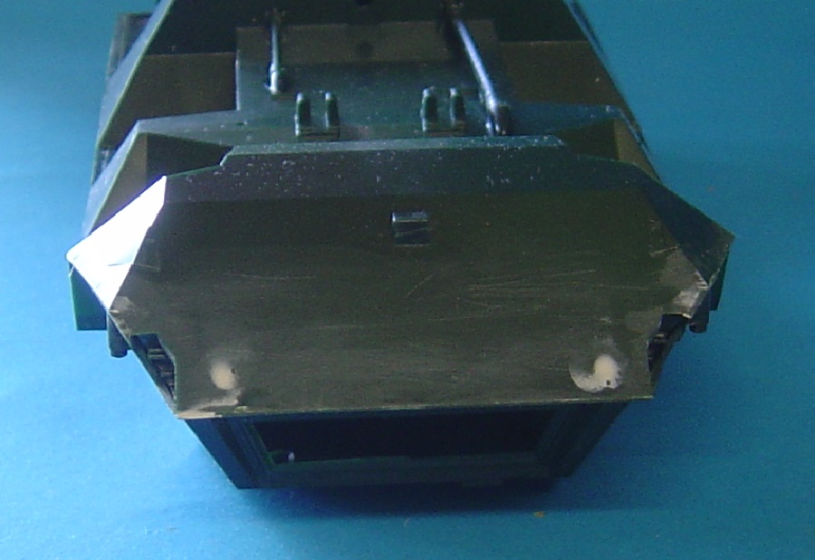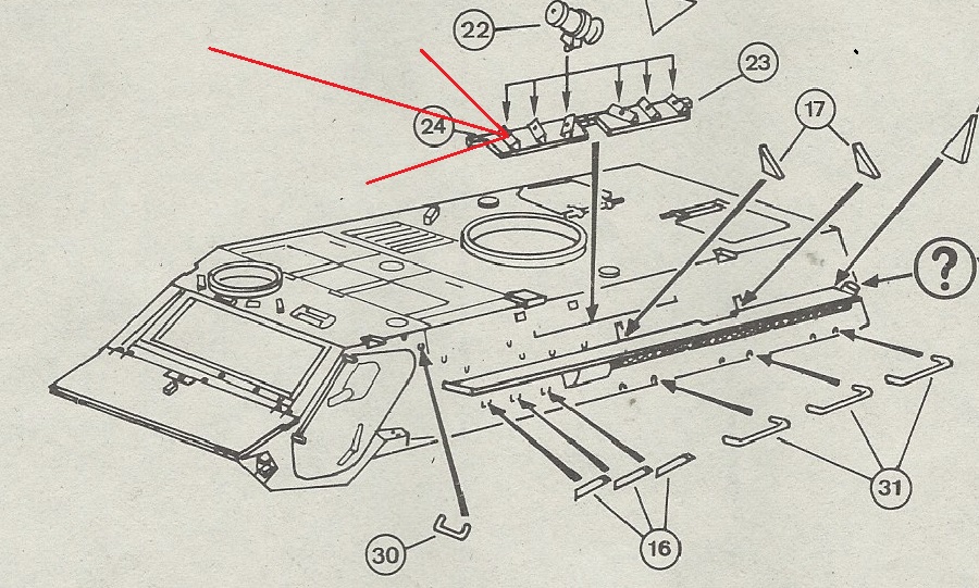 Weiter geht es nun mit dem Anbau der Kleinteile. Hier hält Revell noch einige Überraschungen parat. Die Erste, im Bauplan zeigen die Löcher für die Nebelwerfer nach vorn.