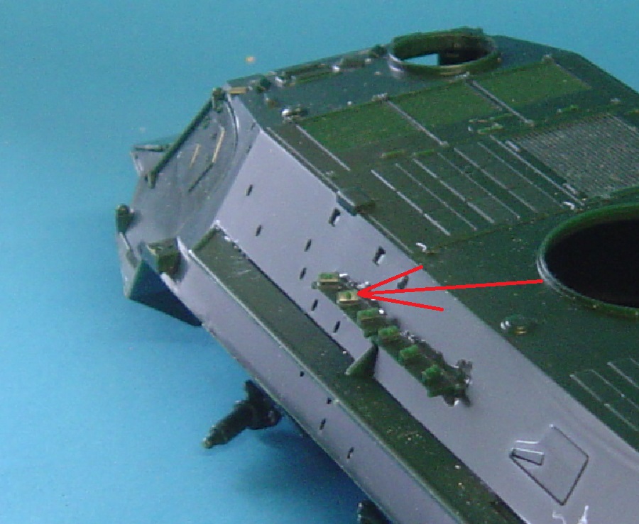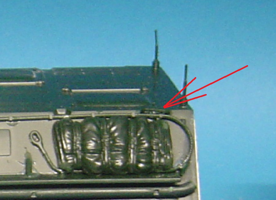 Auf der linken Seite, hinten oben fehlt der Haltebügel als Teil, die Klebelöcher sind da.
