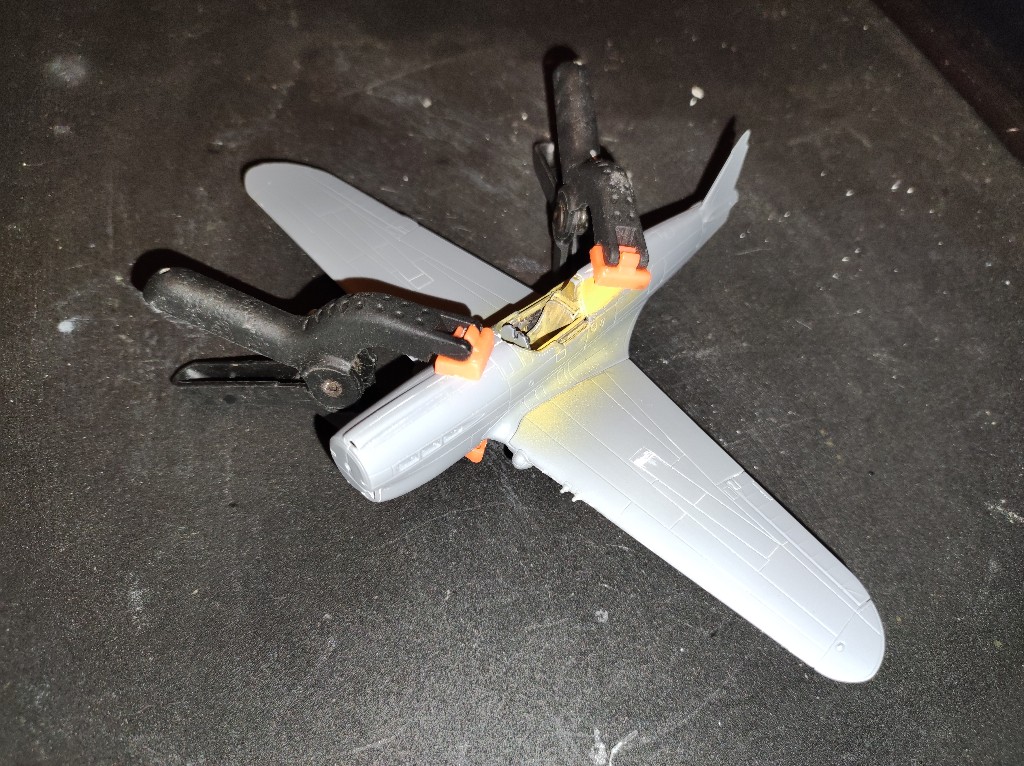 Auch der Zusatztank ist gebaut wurden. Hier musste etwas gespachtelt werden. Aber das war kein großes Drama. Die Streben habe ich dann direkt am Modell ausgerichtet.